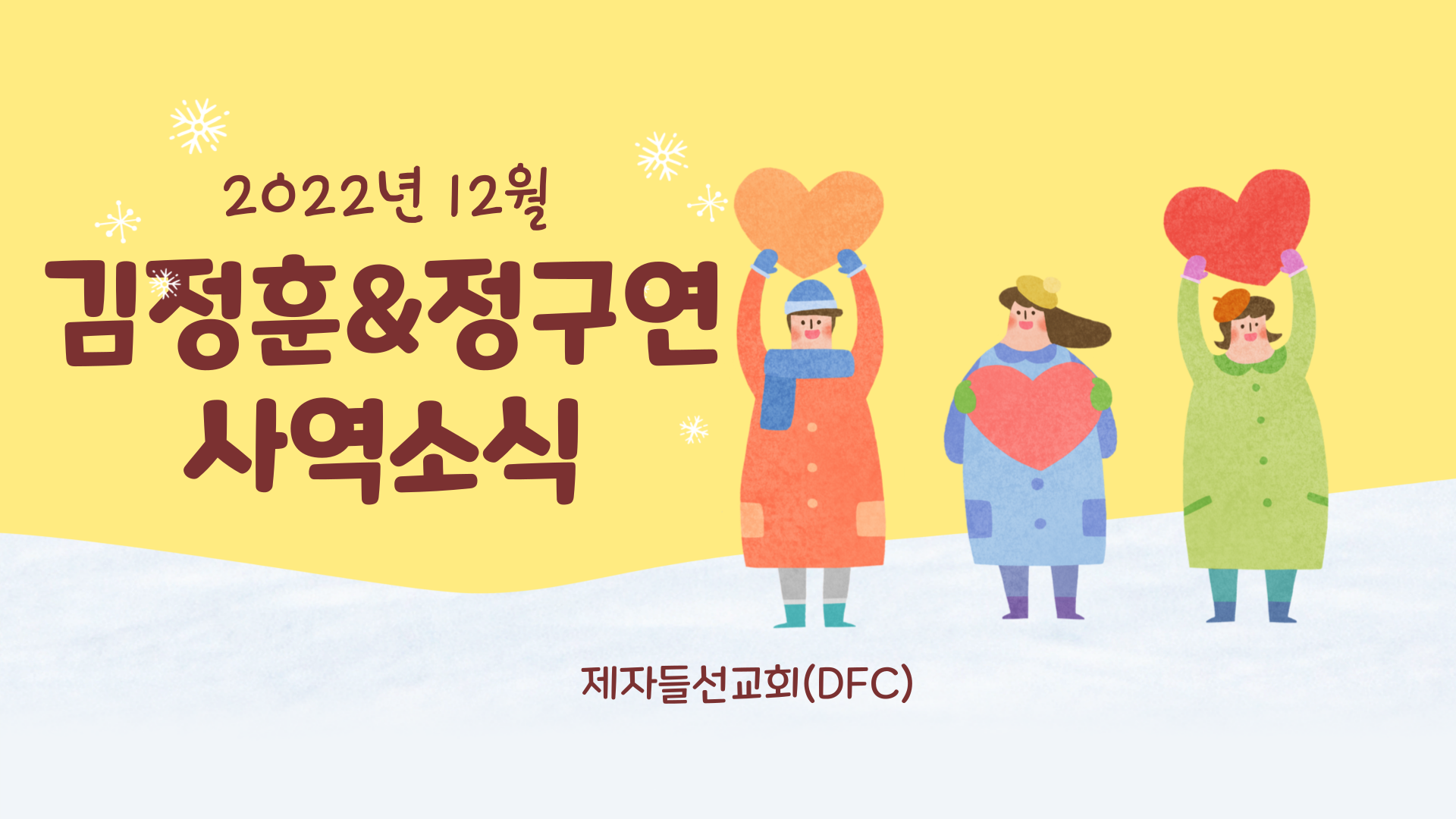 김정훈 선교사는 DFC 대전지구 대표로, 정구연 선교사는 DFC 대전지구 캠퍼스 선교사로 사역하고 있습니다.