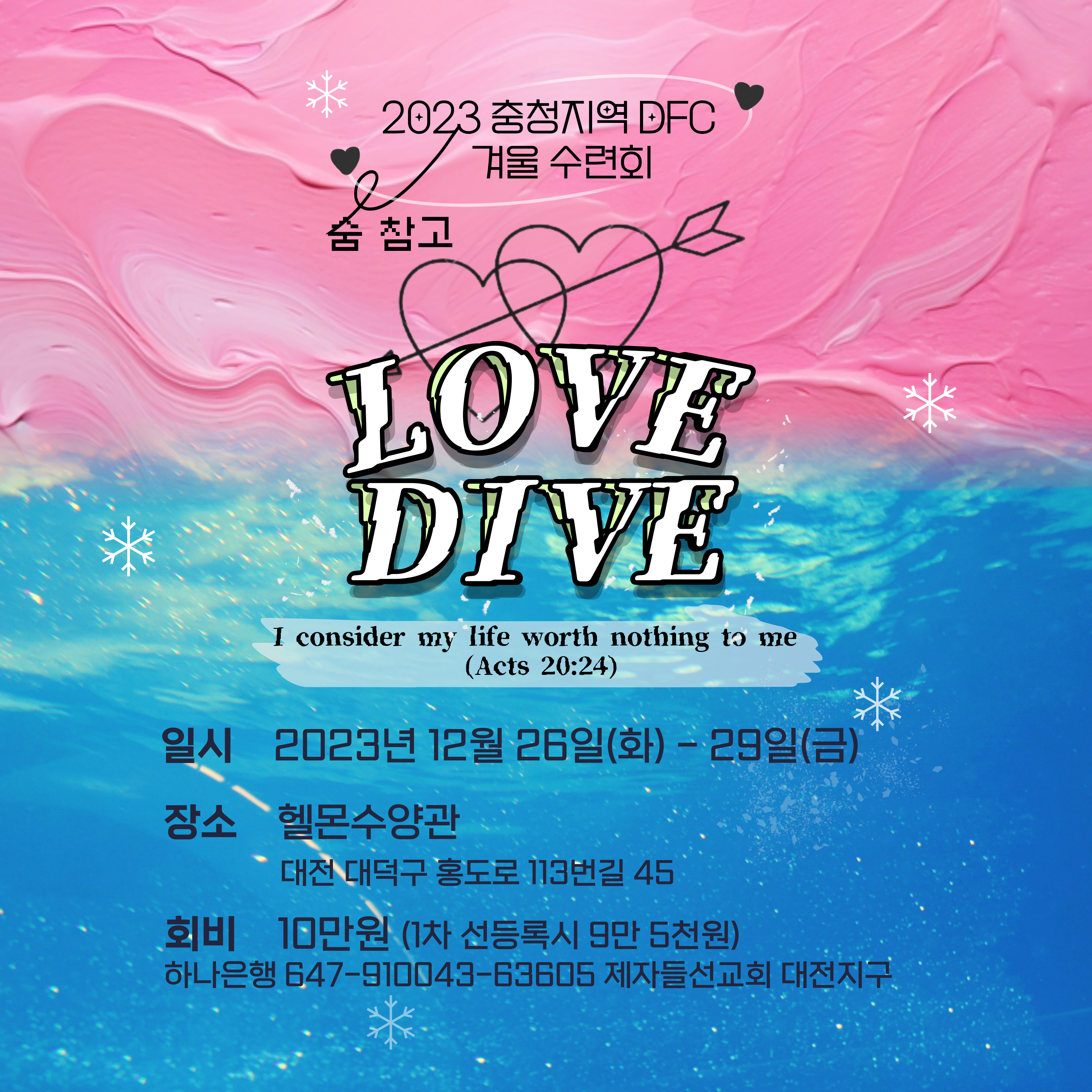 1. 이번 겨울수련회를 통해 대전DFC에게 보내주신 지체들이 영혼을 품고 사랑하는 제자들로 잘 세워지게 해 주소서.