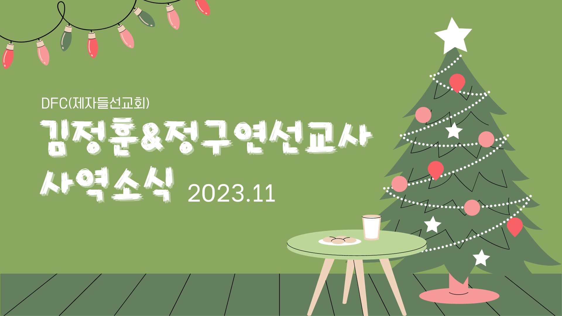 | 김정훈&정구연 선교사 2023년 12월 사역소식 (0) | 2024.01.02 |