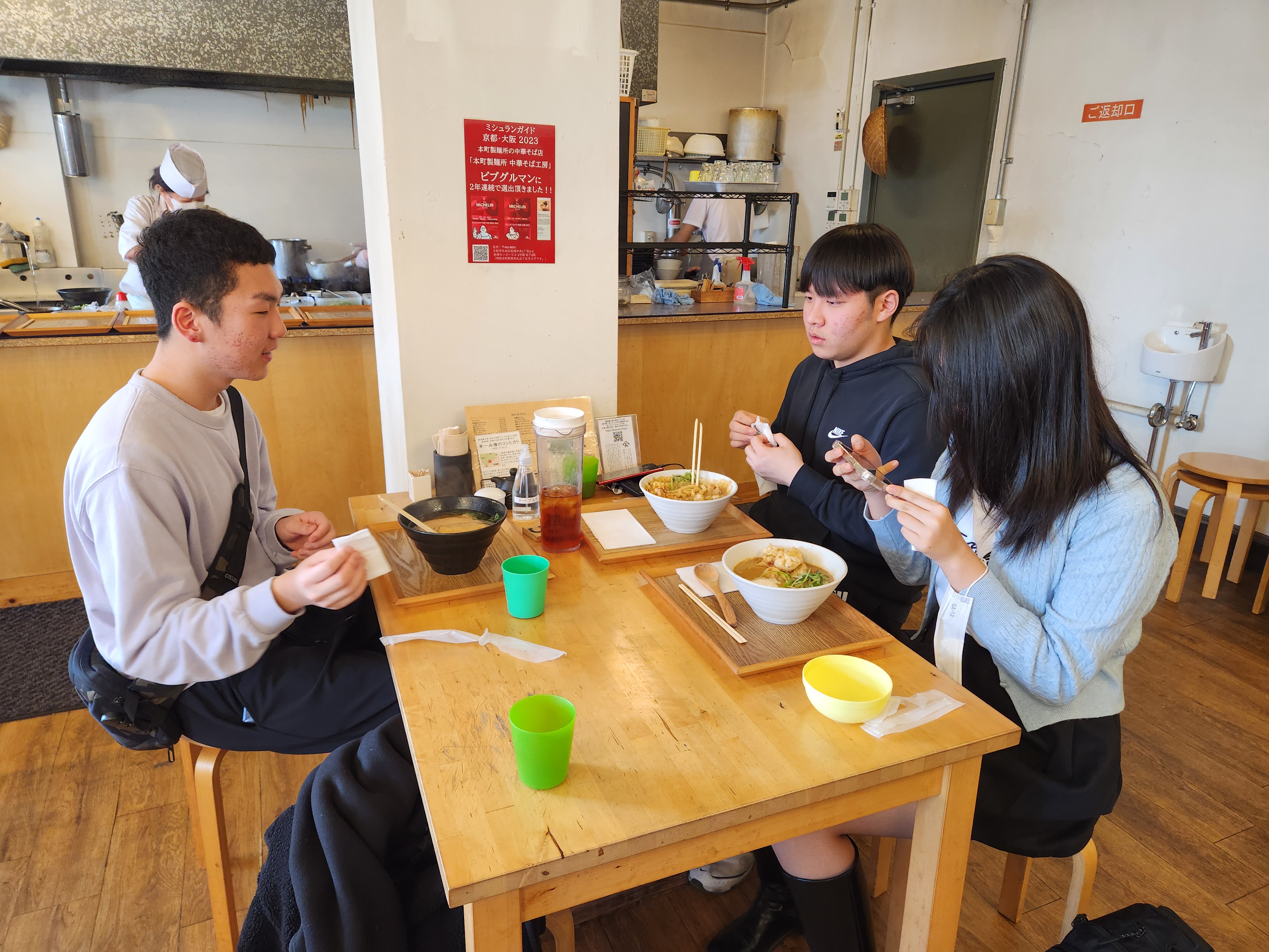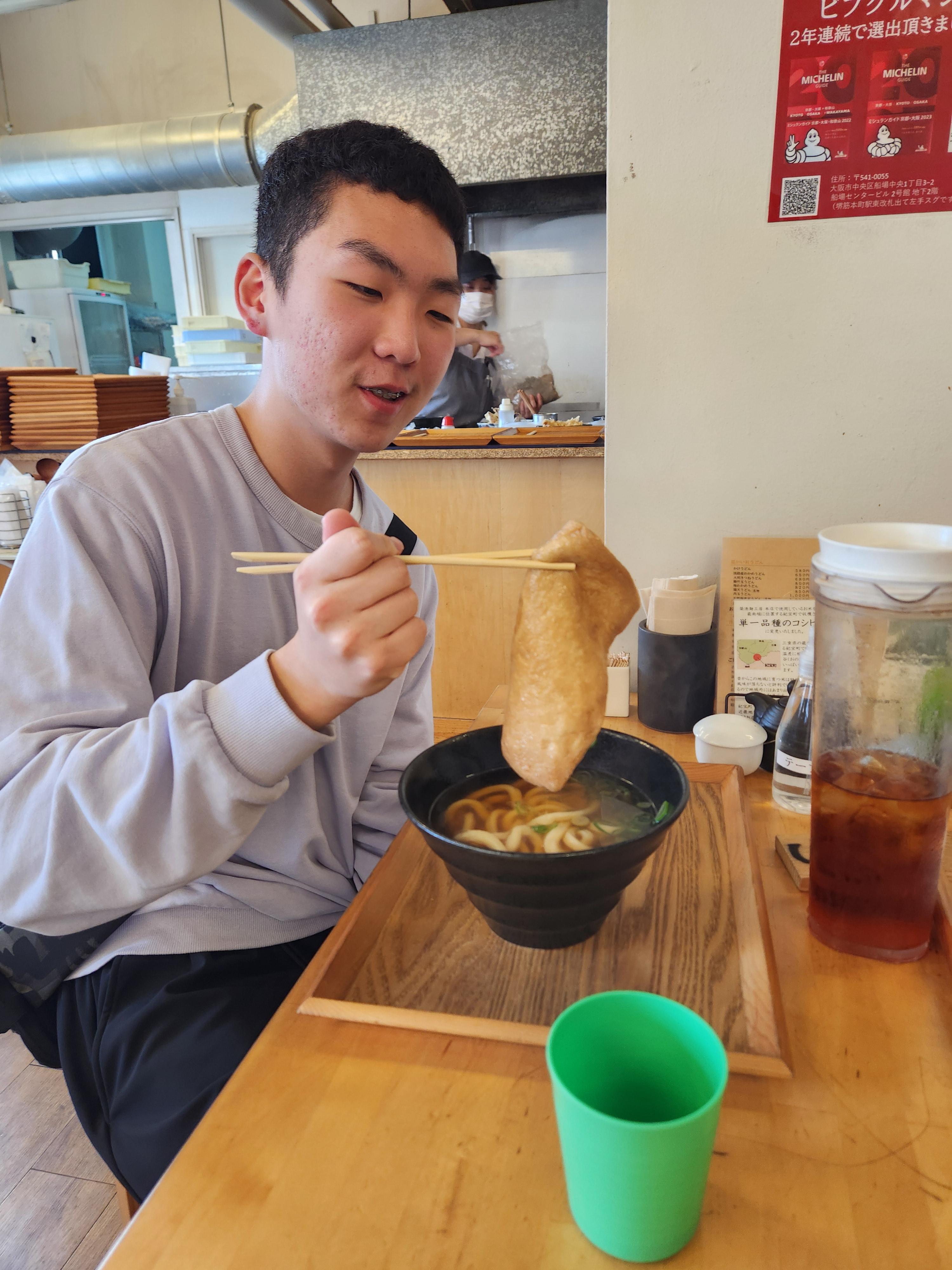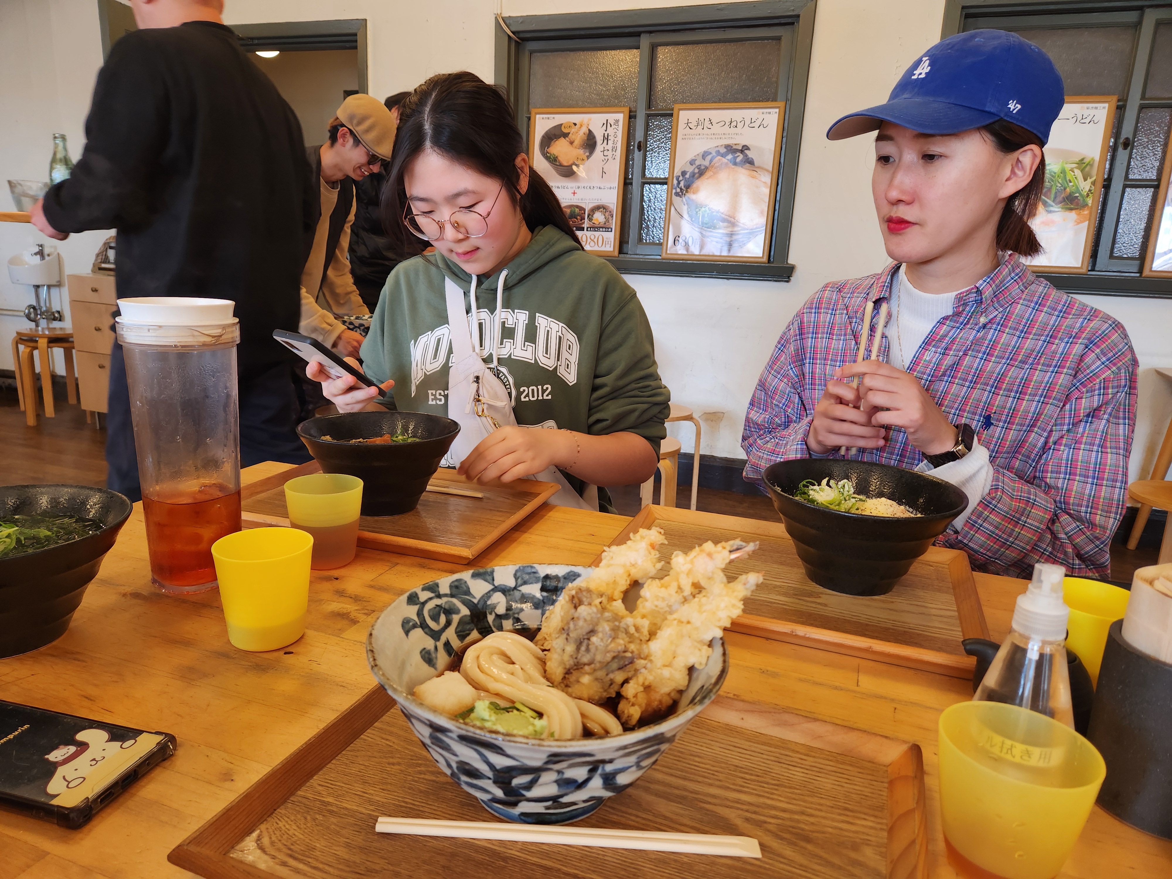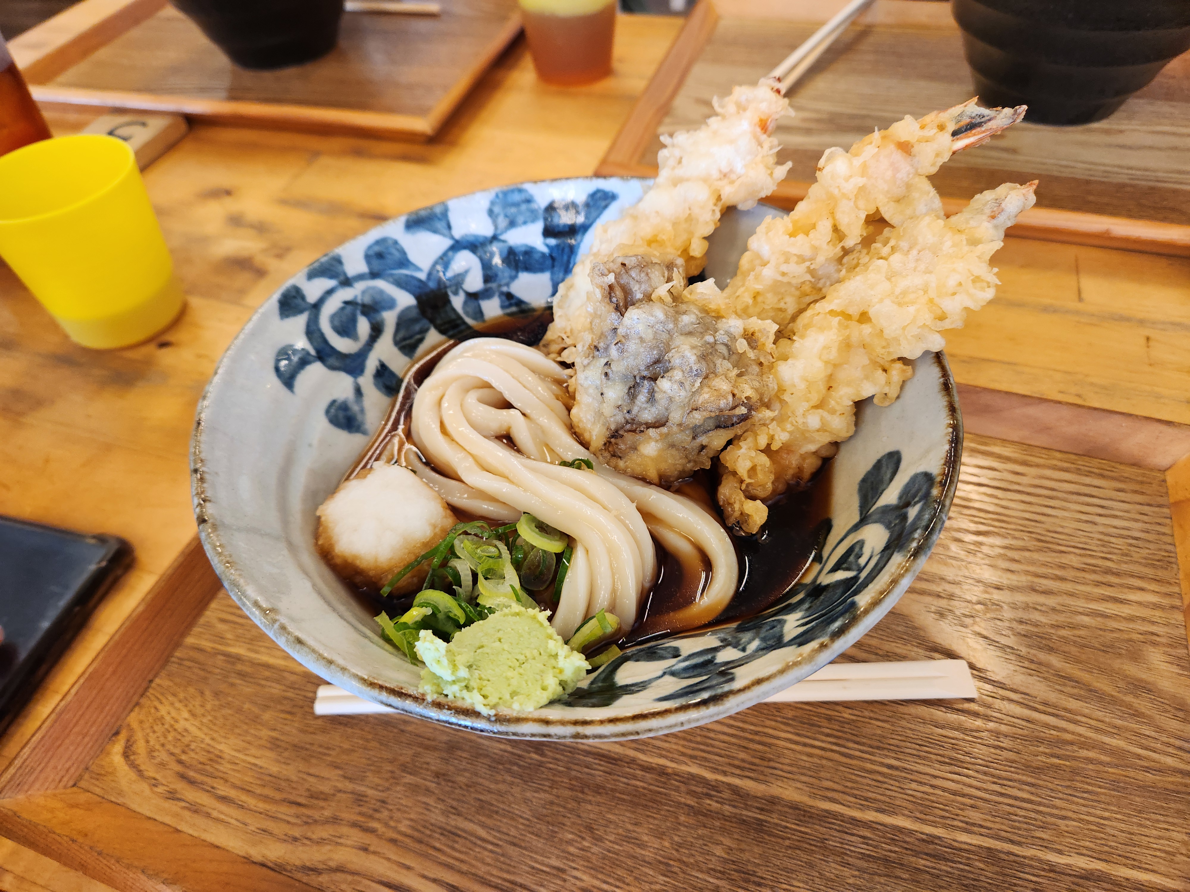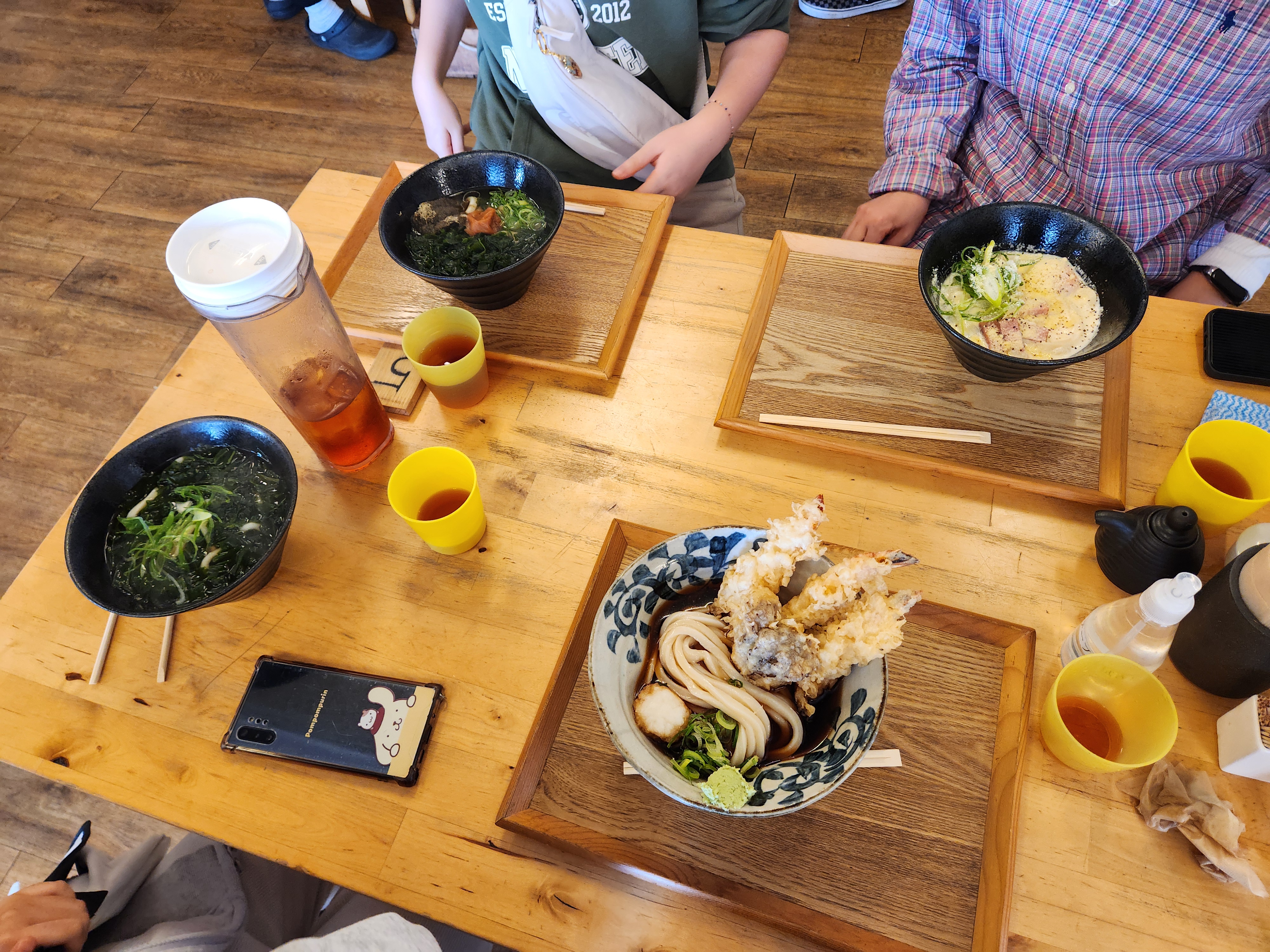 오후 일정은 <가이유칸 아쿠아리움>엘 가는 것. 일단 아쿠아리움 근처로 이동해서 점심 식사를 했다. 오늘 점심 메뉴는 우동! 나는 냉우동+새우튀김 세트를 먹었다. 이번 메뉴도 학생들 모두 만족도가 높았다. 예원이와 소율이는 우메보시와 미역이 들어간 우동을 고르길래 좀 신기해 했는데 둘 다 맛있단다. 다행. (6,240엔)