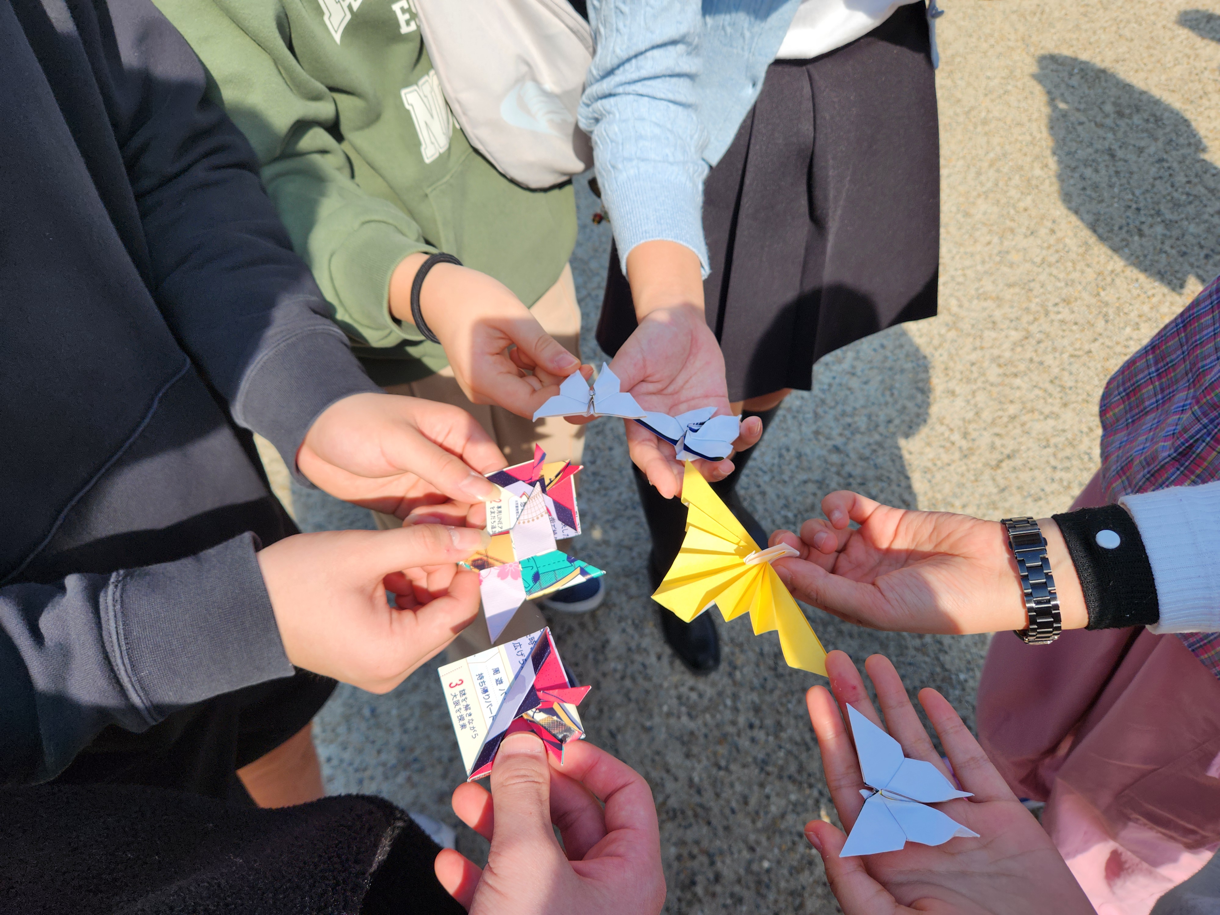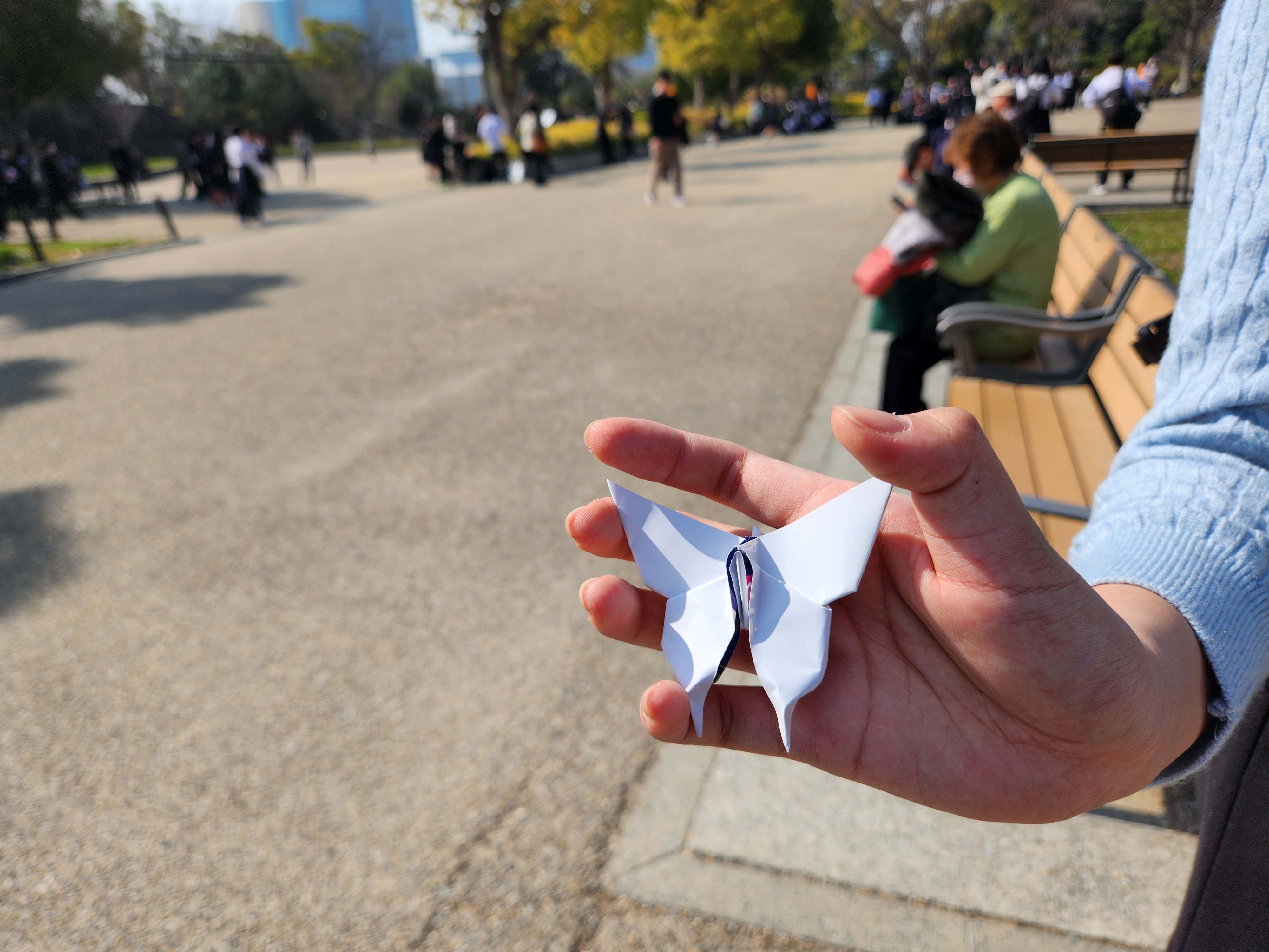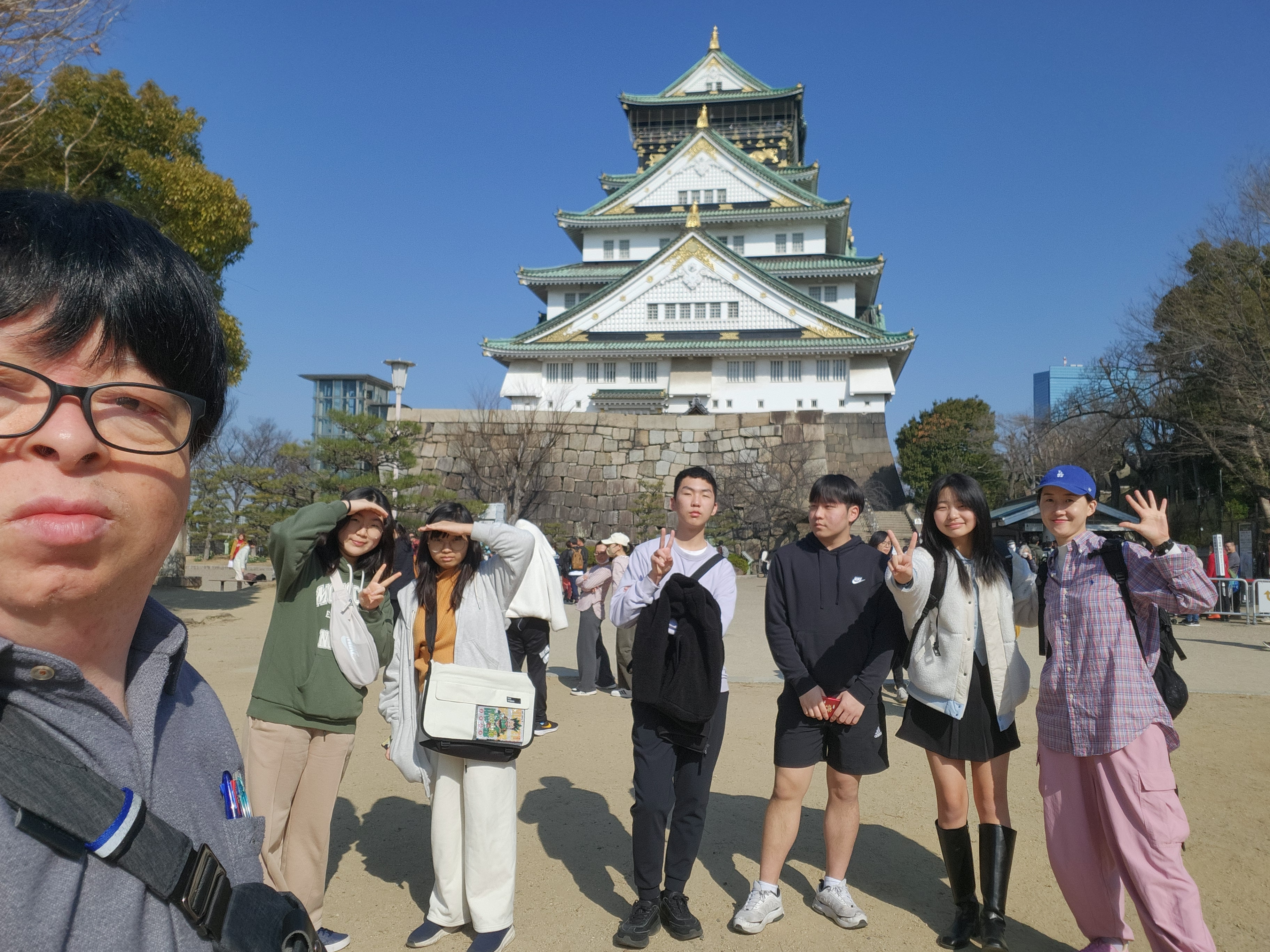 모닝 세트 먹고 힘내서 열심히 걸어 오사카성에 도착했다. 지하철은 학생 할인 나이가 낮아서 안 됐는데 오사카성은 중학생들은 모두 학생 요금이 적용됐다. 다행히 모두 여권을 들고 와서 할인 성공. 오사카에 오사카 성이 유명한 건 알았지만 내부에 들어가보니 임진왜란의 주범인 토요토미 히데요시가 살았던 성이고 그래서 그에 대한 기록과 전시가 많았다. 학생들은 전시에 기록된 내용들을 잘 안보는 경향이 있는데 나는 조금 자세히 보려고 시간을 썼다. 그러다 보니 내가 제일 늦게 나와 버렸다. 나와 보니 아이들이 다들 종이로 만든 뭔가를 하나씩 들고 있었다. 무슨 일인지 물어보니 벤치에 앉아서 쉬고 있었는데 옆에 앉아 있던 일본 아저씨가 한국 어디서 왔냐고 말을 걸어와서 대화를 하다가 그 분이 우리 학생들에게 종이접기를 하나씩 만들어서 선물로 주셨다는 것이다. 신기한 일이다. 종이접기로 사람들과 소통하는 분인듯 했다. 아이들도 그 작품을 정말 좋아해서 아저씨께 인사를 잘 드리고 오사카 성을 나왔다.