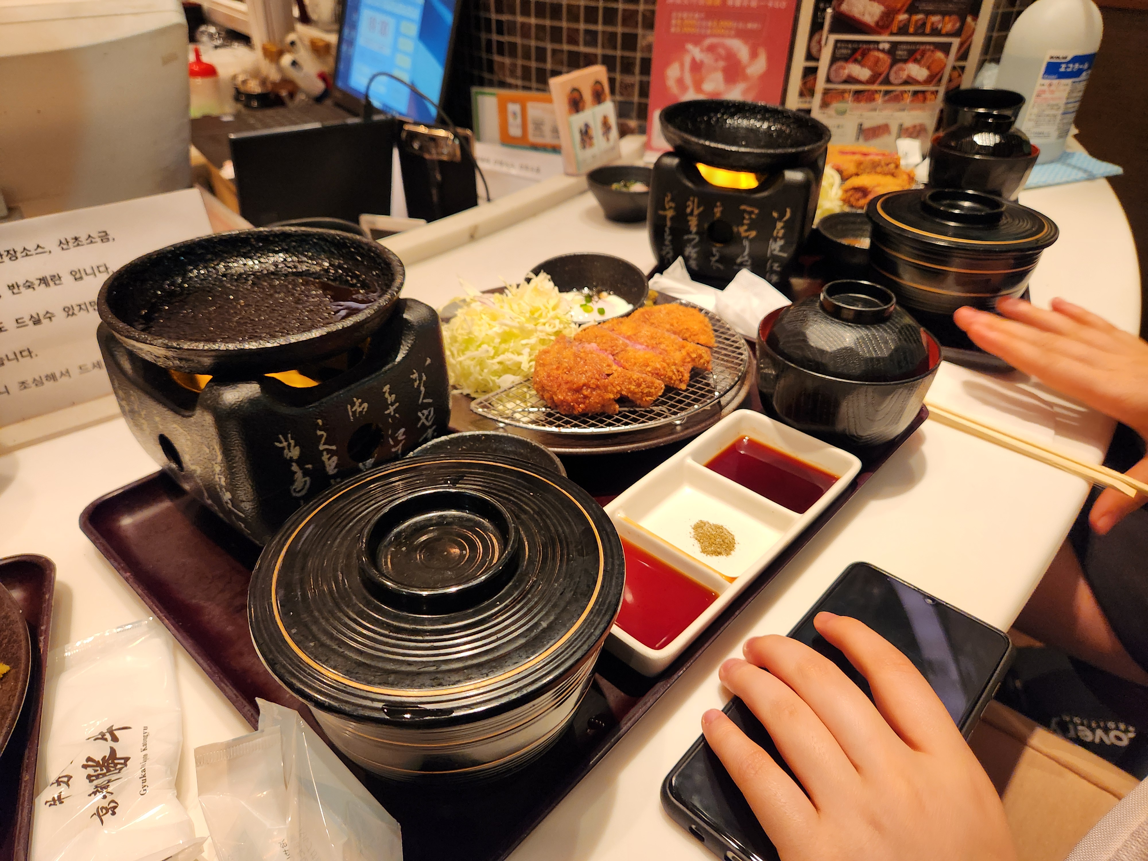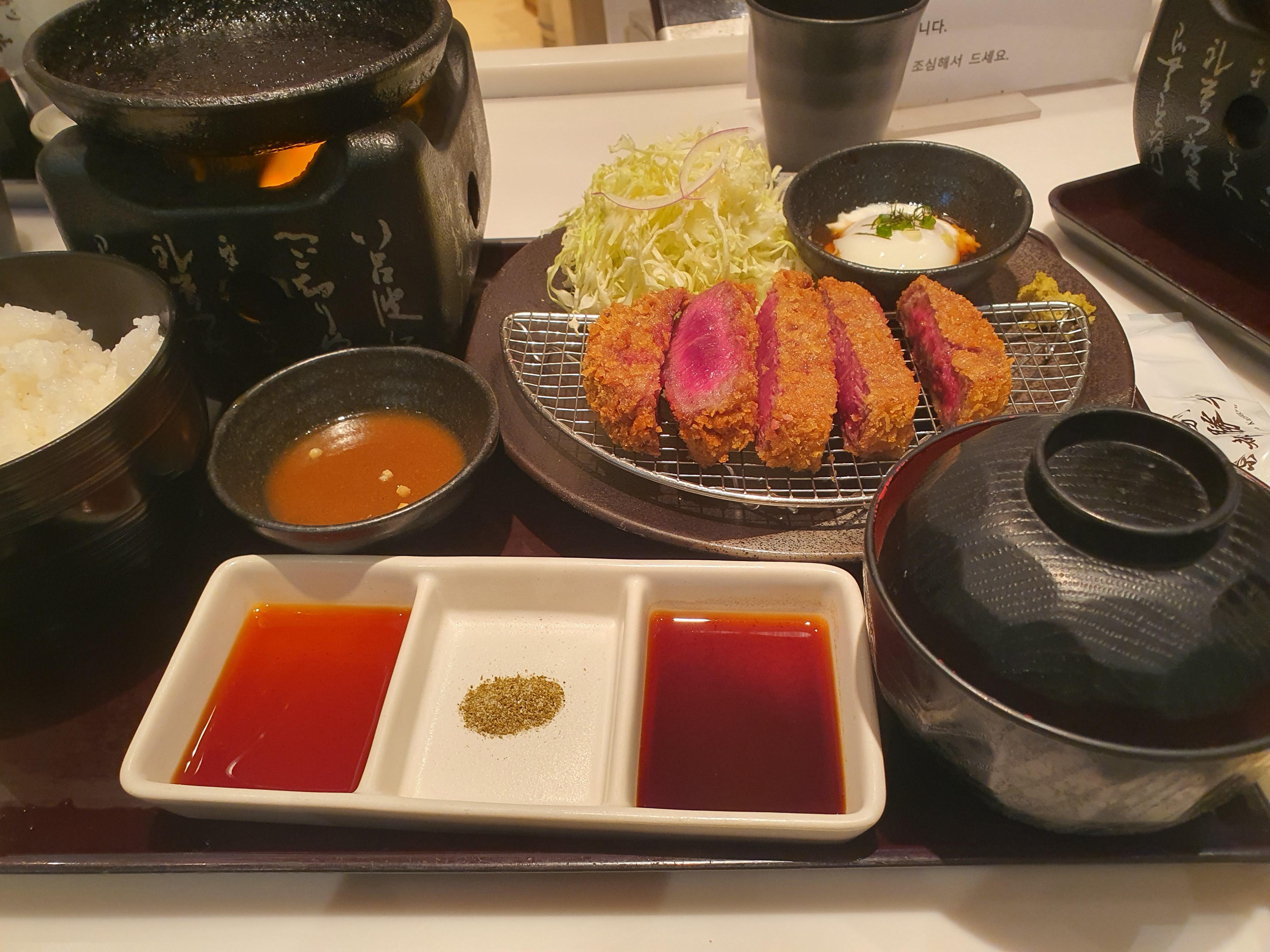 오늘 저녁 메뉴는 <규가츠>. 돈까스를 먹고 싶다는 학생이 있었는데 치야교정 중인 친구가 있어서 좀 더 부드러운 메뉴를 찾다가 규가츠로 낙찰. 학생들은 용감하고 우설가츠를 먹는 친구도 있었다. 나는 살치살+안심가츠를 먹었다. 역시 맛있었음. 이번엔 다들 음식이 입에 맞고 맛있어서 학생들이 더 좋았던 것 같다. (식비 15,763엔)