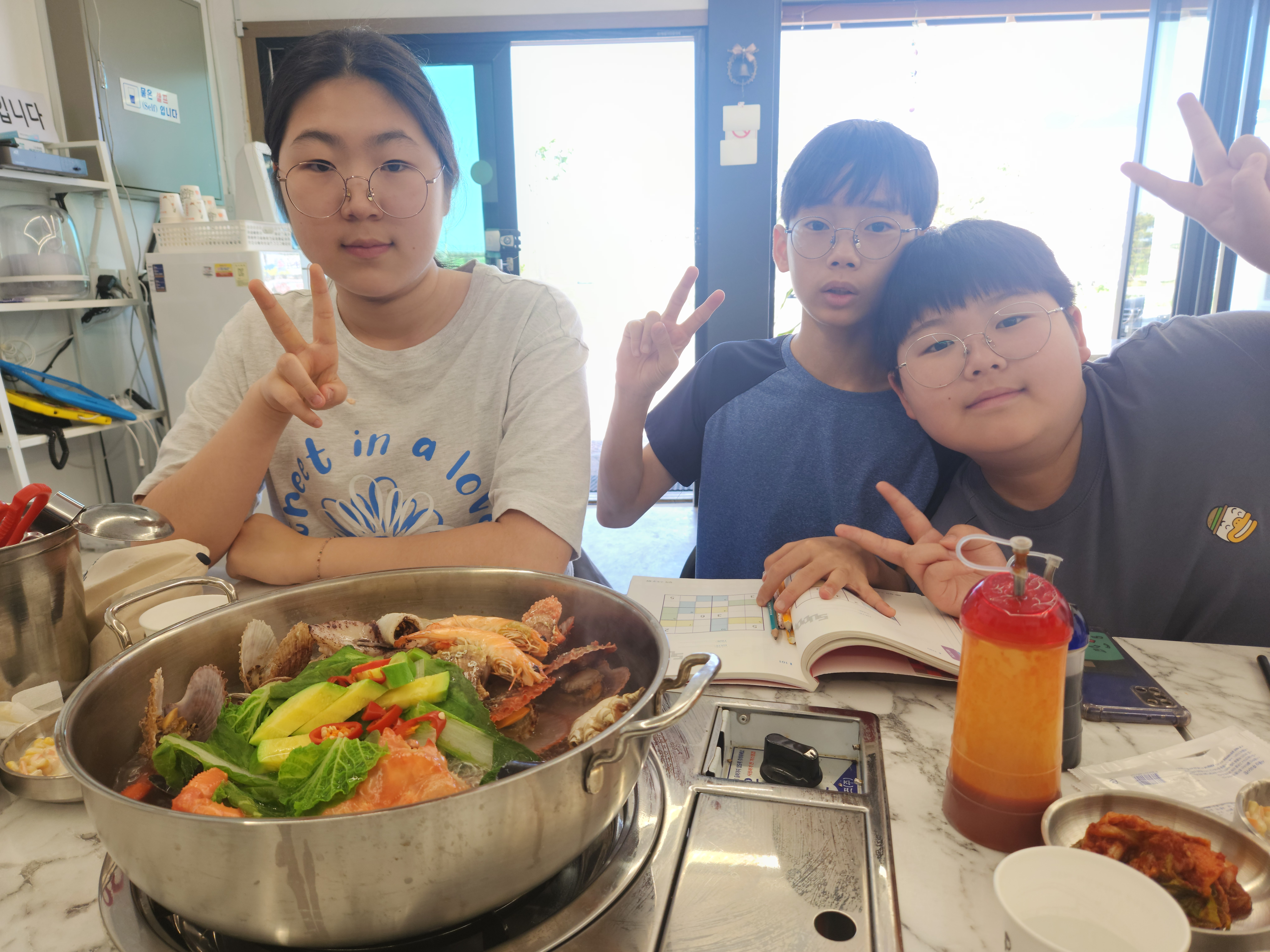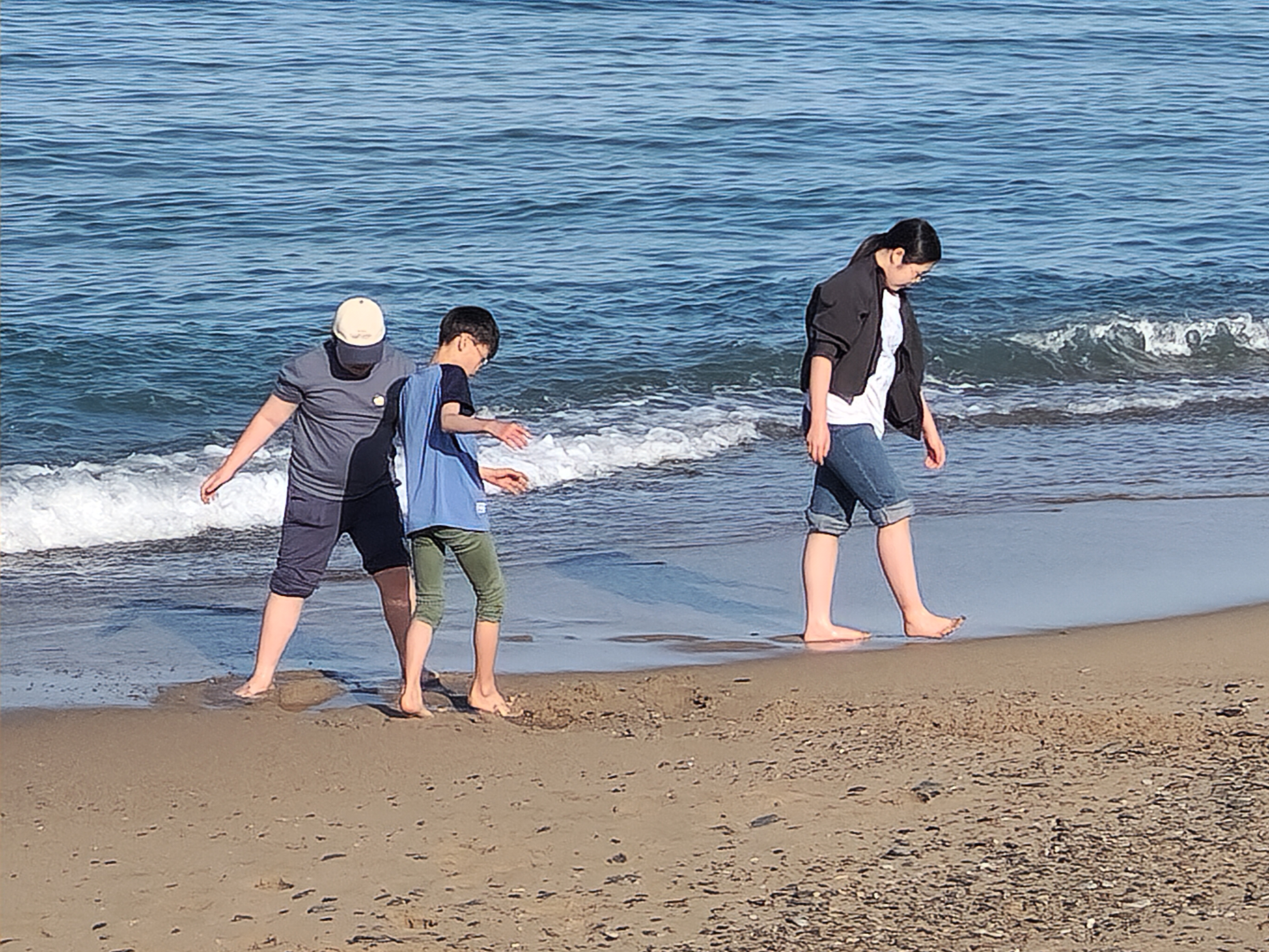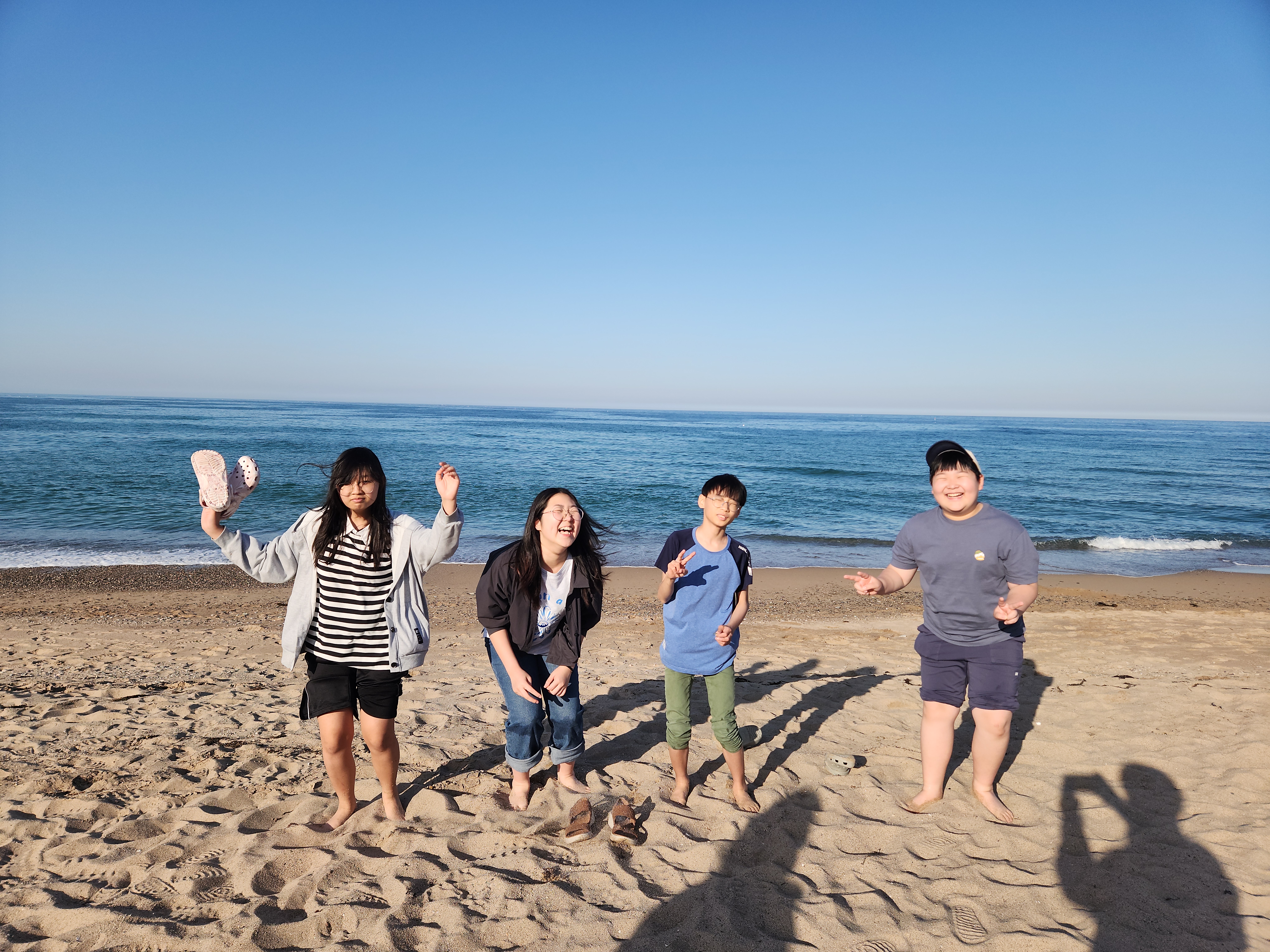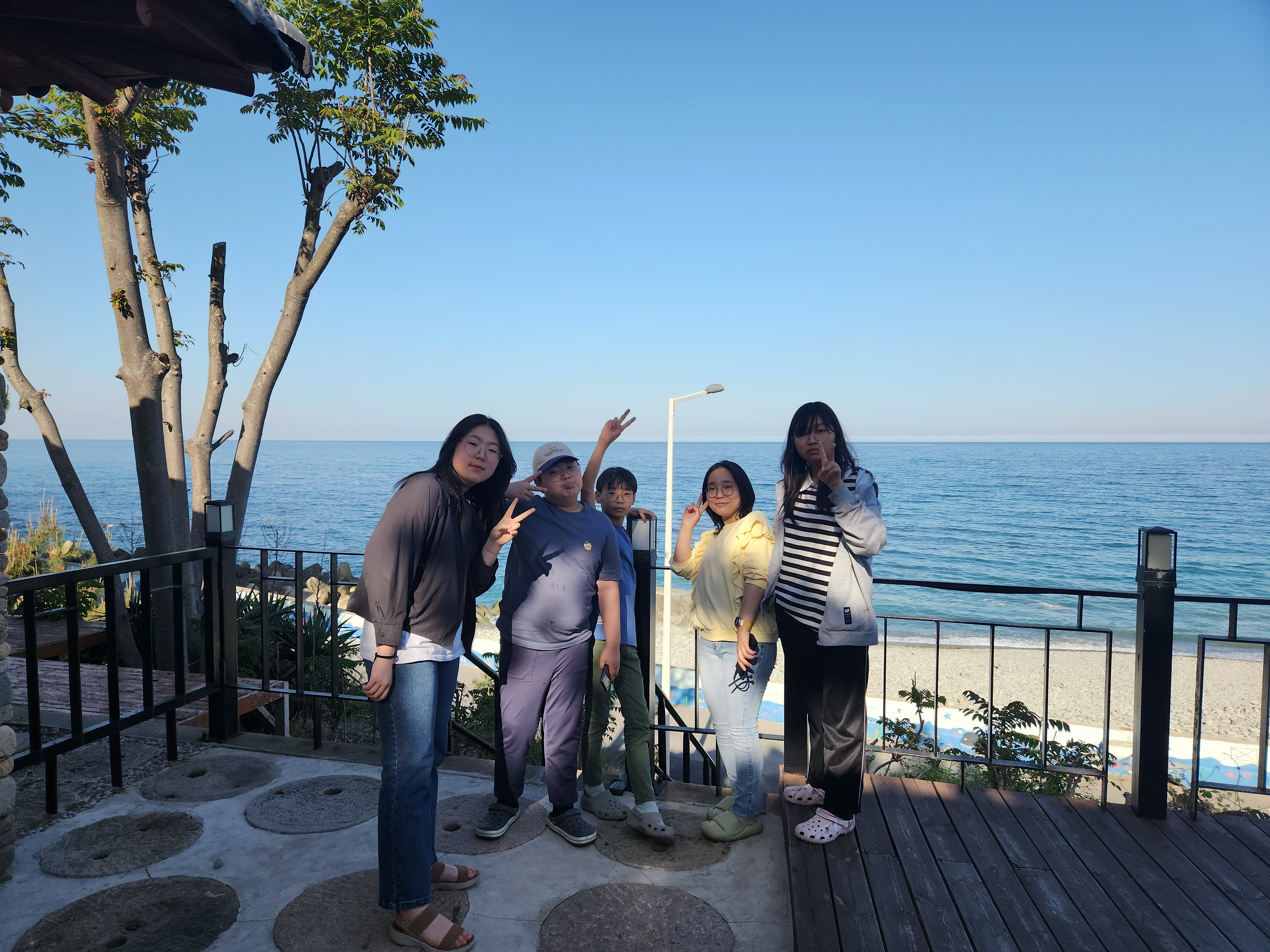 그 카페를 간 이유가 해변과 연결되어 있어서 해변에서 놀기도 하려는 것이었는데 해변이 백사장이 아닌 돌들로 된 해변이라 아이들이 관심이 별로 없어서 카페 부근에 있는 장사해수욕장으로 옮겨서 바다에 발 담구고 놀았다.