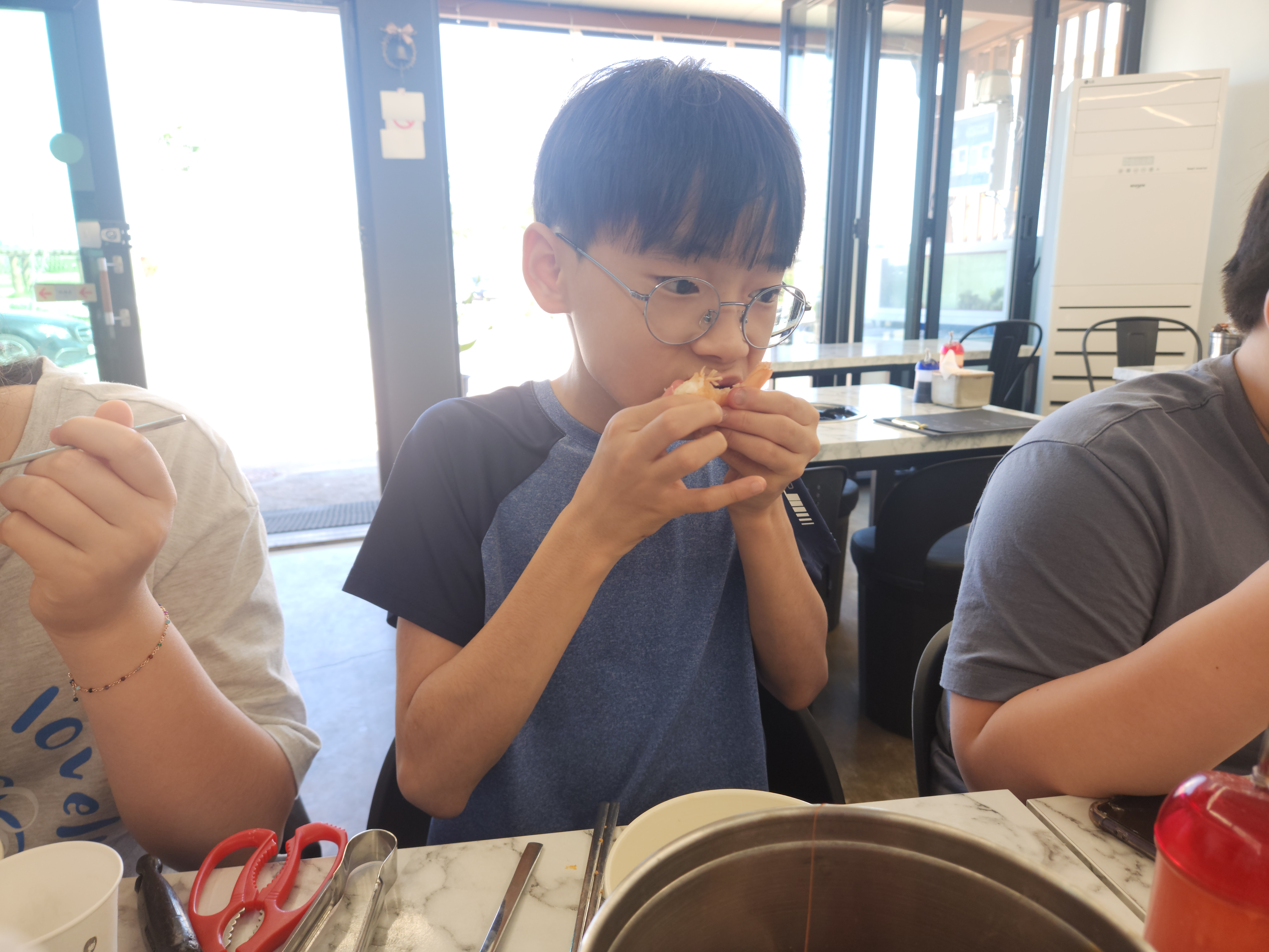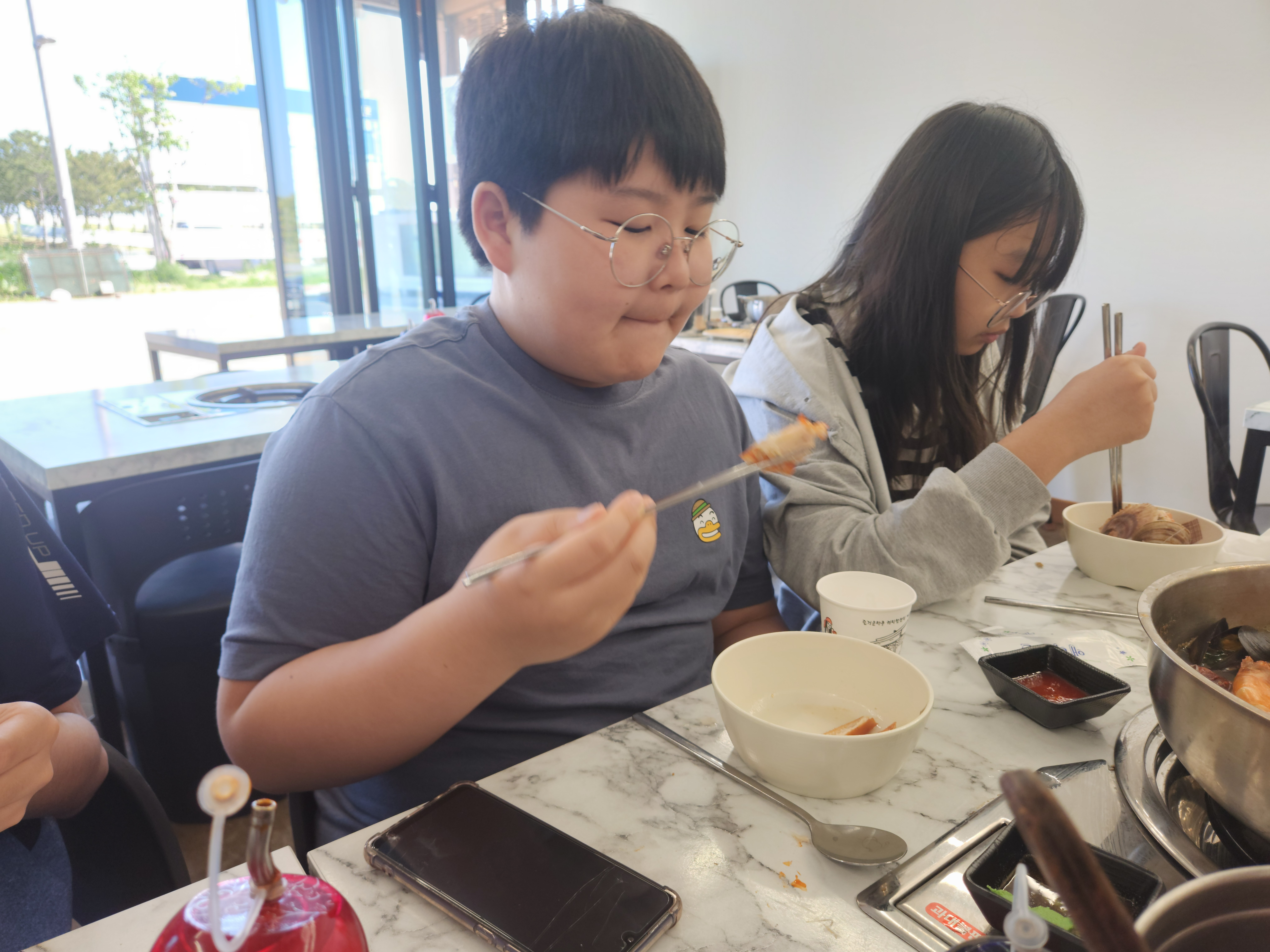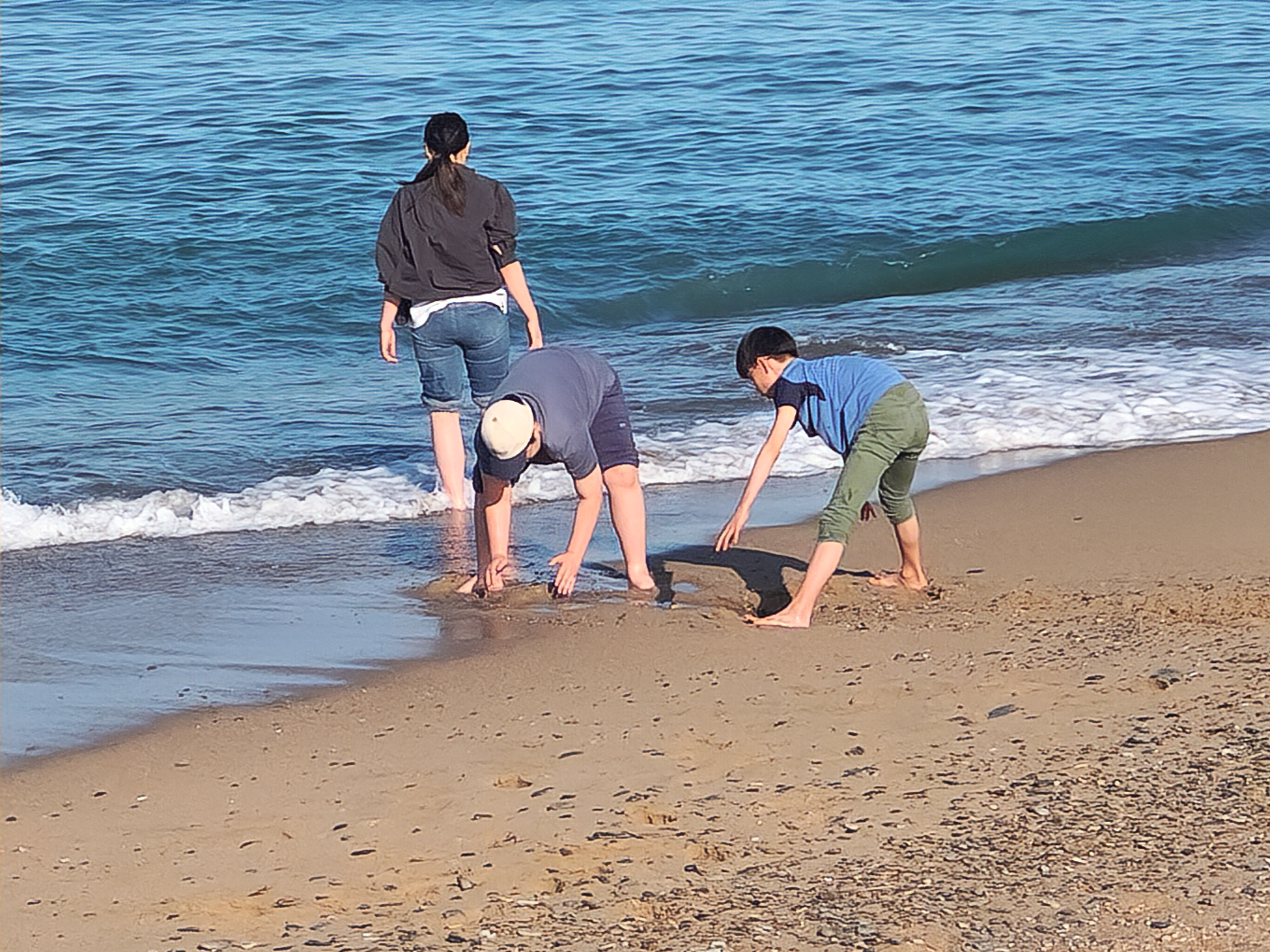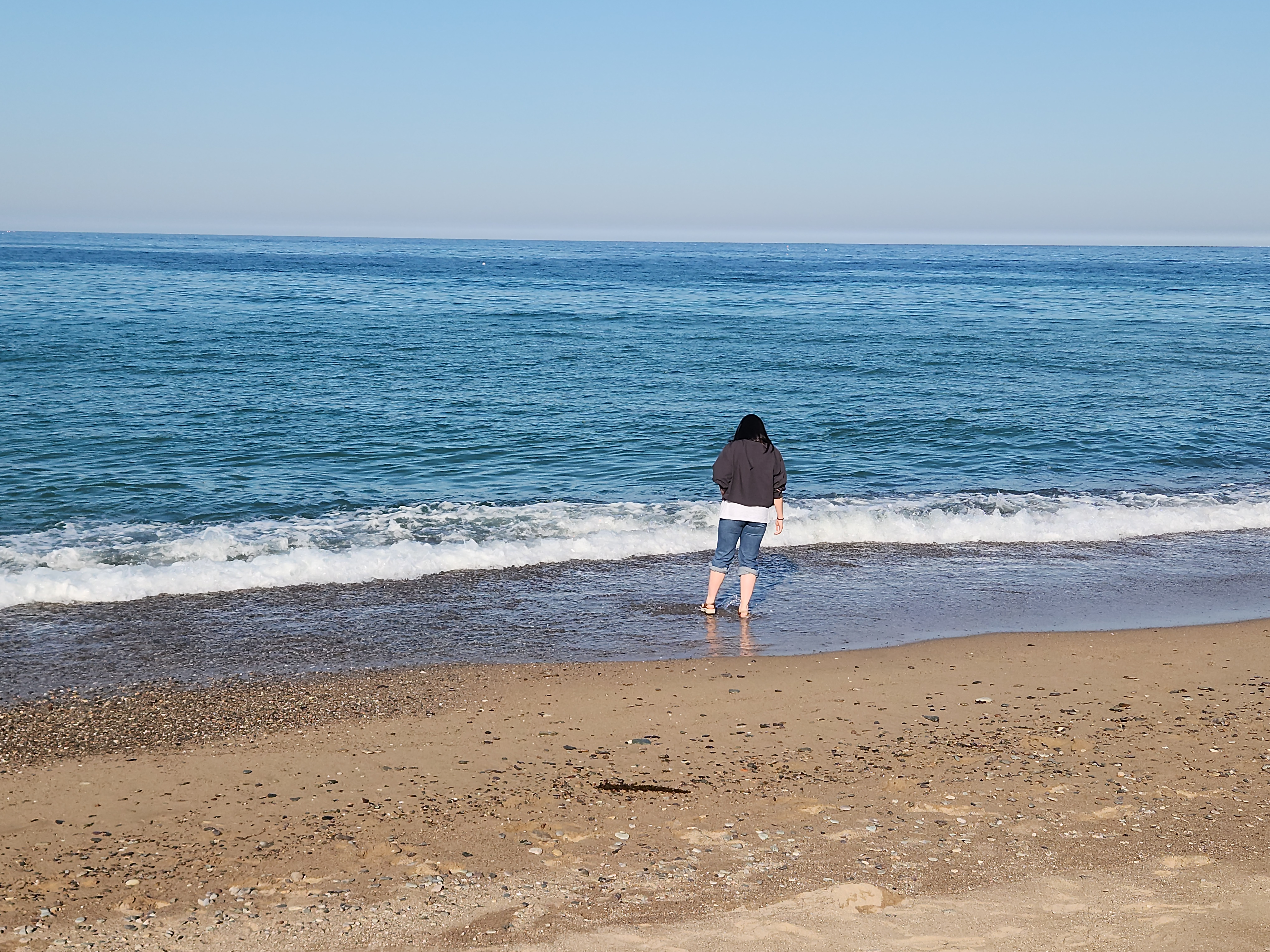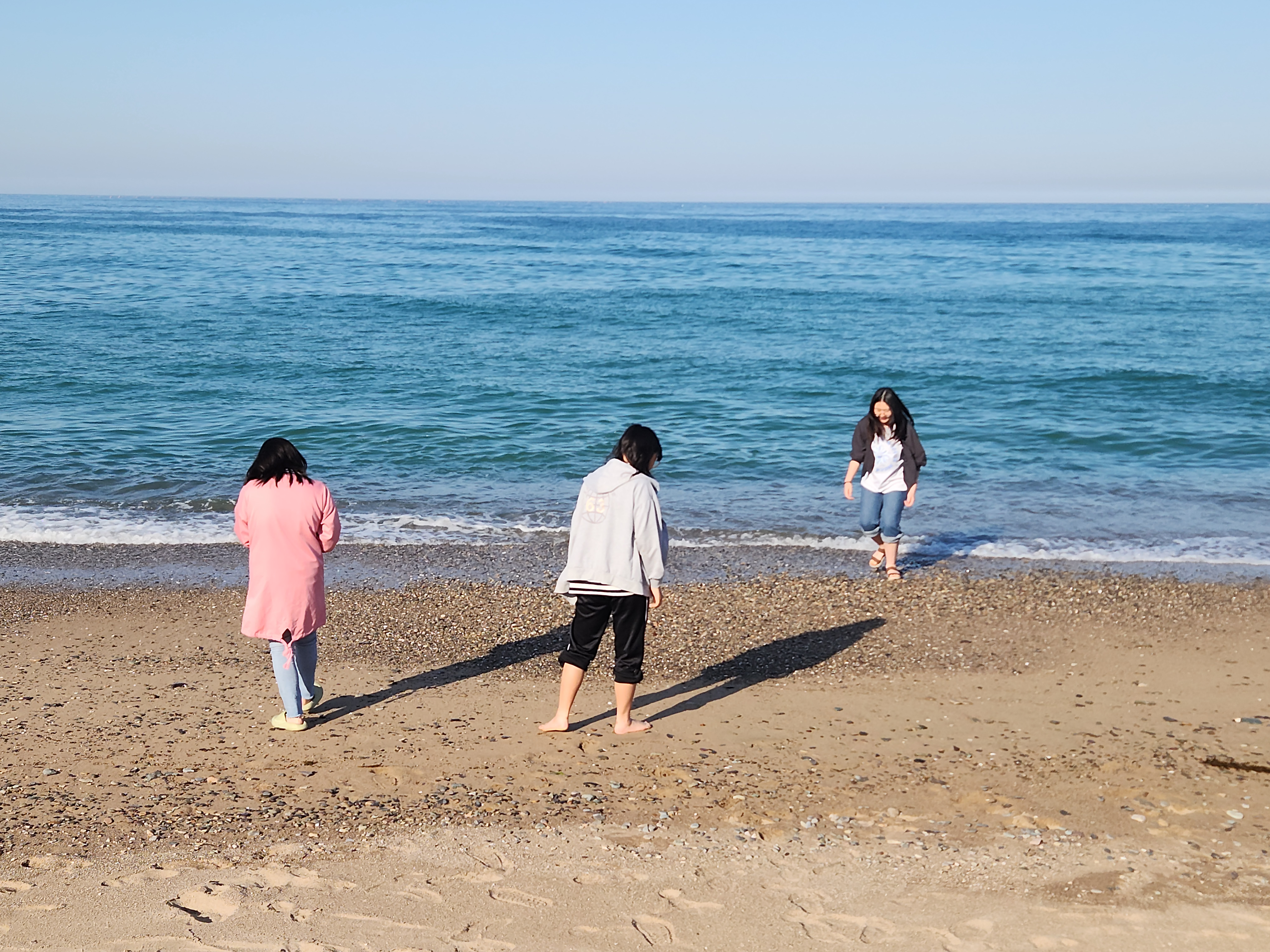 그 카페를 간 이유가 해변과 연결되어 있어서 해변에서 놀기도 하려는 것이었는데 해변이 백사장이 아닌 돌들로 된 해변이라 아이들이 관심이 별로 없어서 카페 부근에 있는 장사해수욕장으로 옮겨서 바다에 발 담구고 놀았다.
