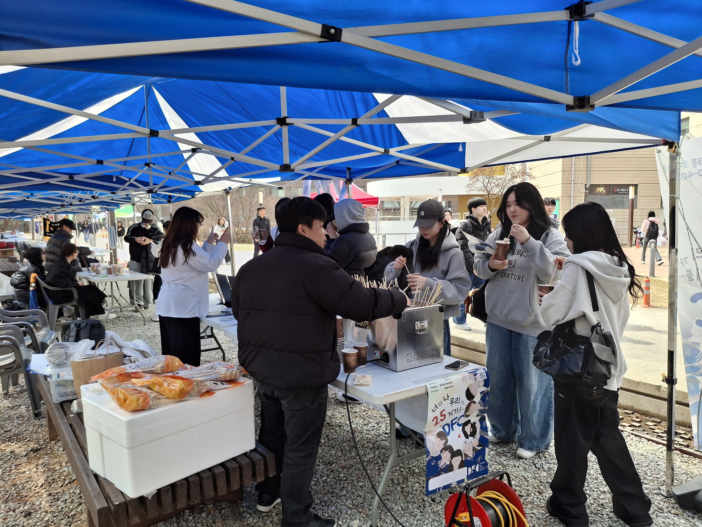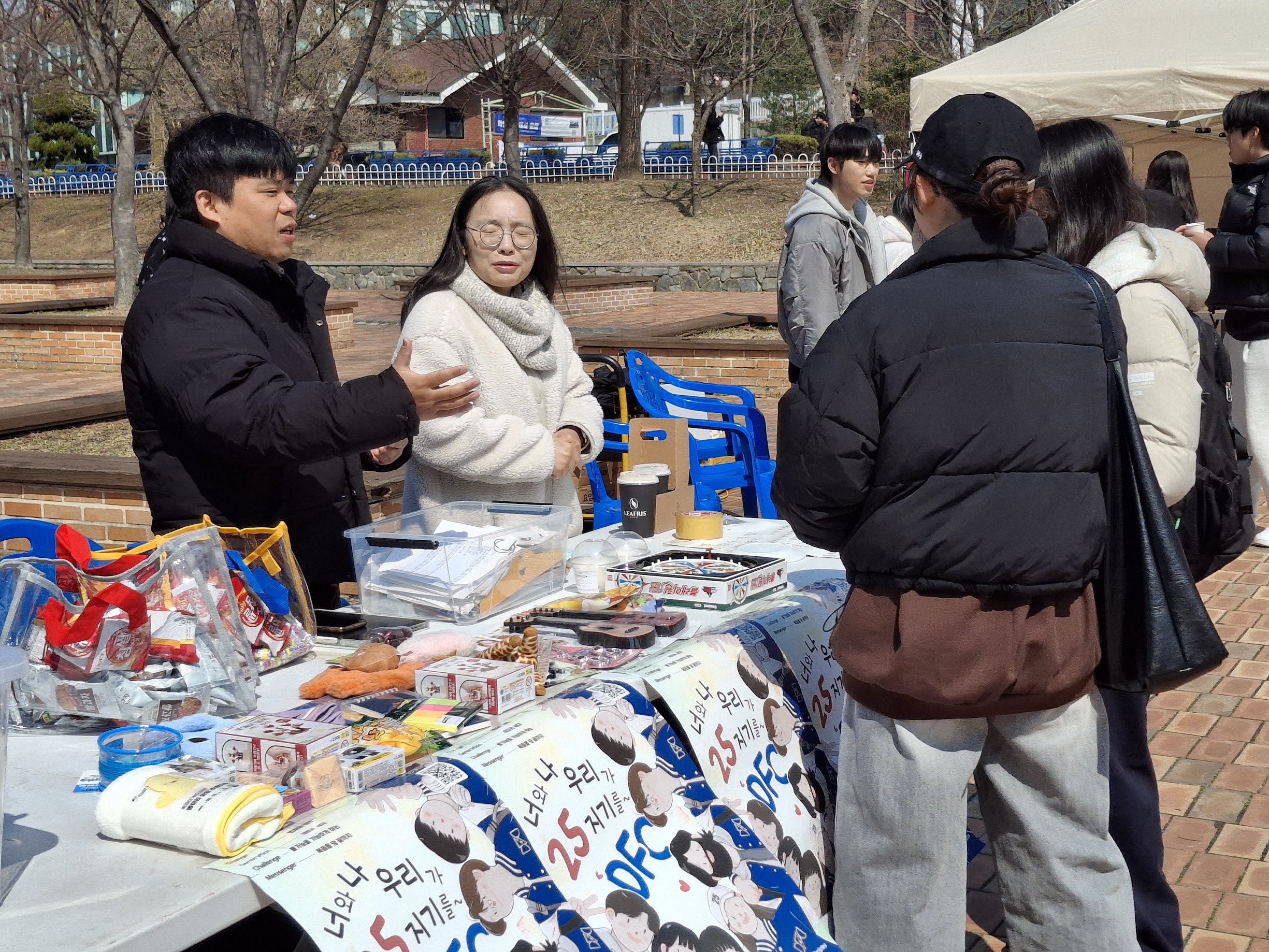 대전대 대전대는 3월 둘째 주에 동아리 박람회가 있어서 홍보부스를 차리고 어묵꼬치와 물떡을 나눠주는 이벤트를 하며 신입생들을 만났습니다. 음식은 350개 정도가 나갔는데 접촉점이 생기는 학생들은 많지 않아 "올해 사역도 쉽지 않겠구나" 싶은 마음이 듭니다. 매 주 월요일 저녁에 함께 기도하기 원하는 학생들을 초청해서 <캠퍼스 기도모임>을 진행하고 있습니다. 함께 마음을 나눌 학생들이 연결되도록 기도해 주세요.