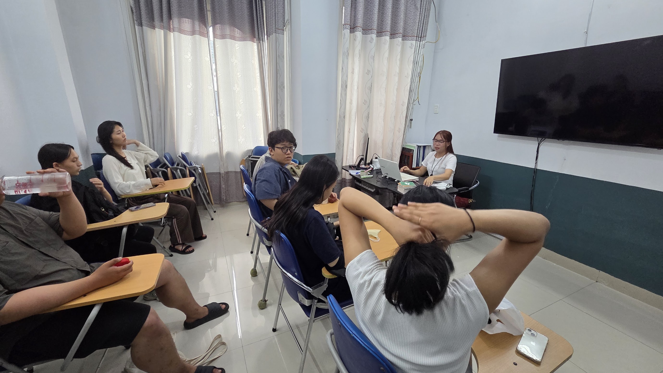 시장에서의 일정이 좀 늦어져서 오후에 예정됐던 스텝들과의 보드게임과 배드맨턴 시합은 취소하고 숙소에 돌아와 휴식했다. 다시 기운을 차리고 학원으로 고고!