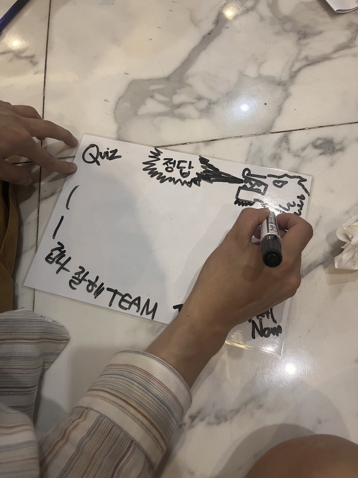 퀴즈대회는 주로 한글과 관련 된 문제들로 진행했다. 베트남 학생들만 푸는 문제, 한국 학생도 함께 푸는 문제등 다양하게 진행했다. 레크레이션과 퀴즈대회를 시온 선생이 진행했는데 에너지 엄청 썼다.