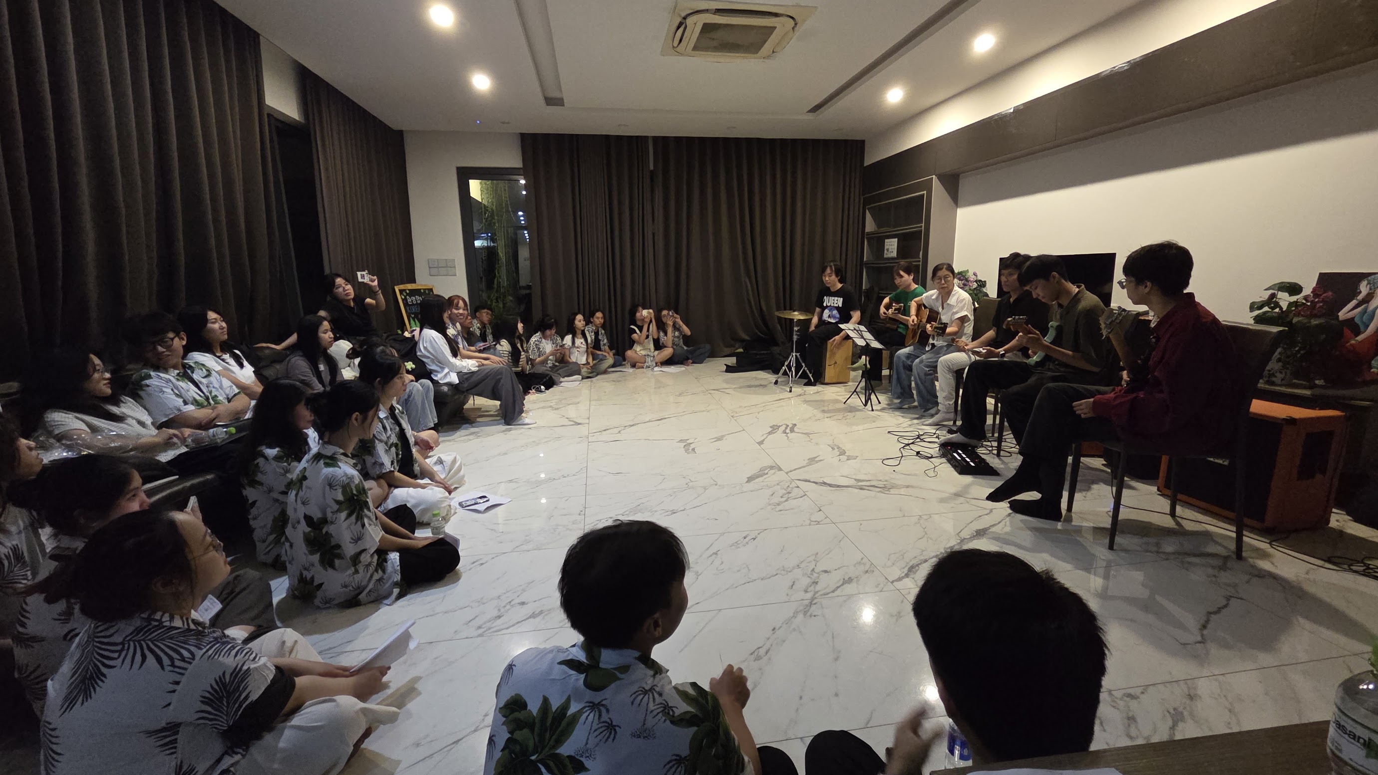 저녁 식사를 하고 나서 저녁 시간 프로그램 시작. 첫 순서는 다낭에 있는 음악학원 밴드의 축하공연. 한국 가요와 베트남 노래를 다섯 곡 정도 연주하고 불렀다. 베트남도 밴드 문화가 발달했다고 들었는데 다들 잘 한다.