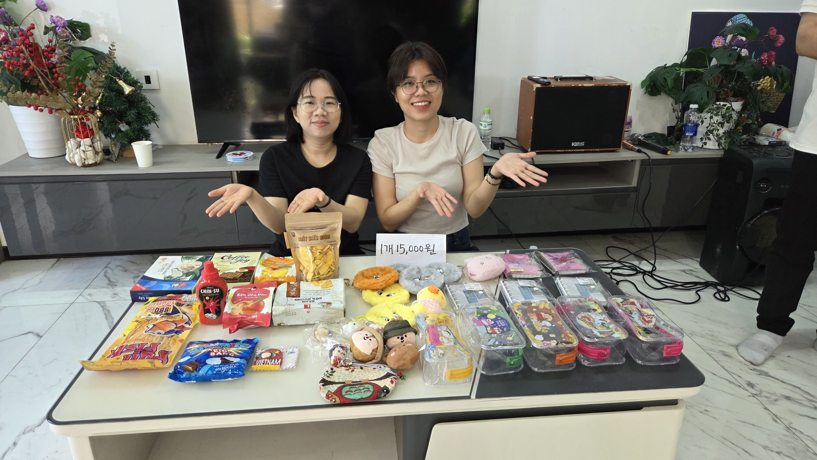 이번 캠프의 하이라이트는 어제 레크레이션과 연극과 퀴즈대회로 조별로 획득한 상금을 시장놀이에서 써 보면서 선물을 가져가는 시간. 한국에서 사간 상품들과 베트남 현지에서 준비해주신 물품까지 90여개의 상품을 놓고 시장 놀이를 했다. 한국 돈을 써보는 체험도 하고 선물도 가져가는 즐거운 시간!