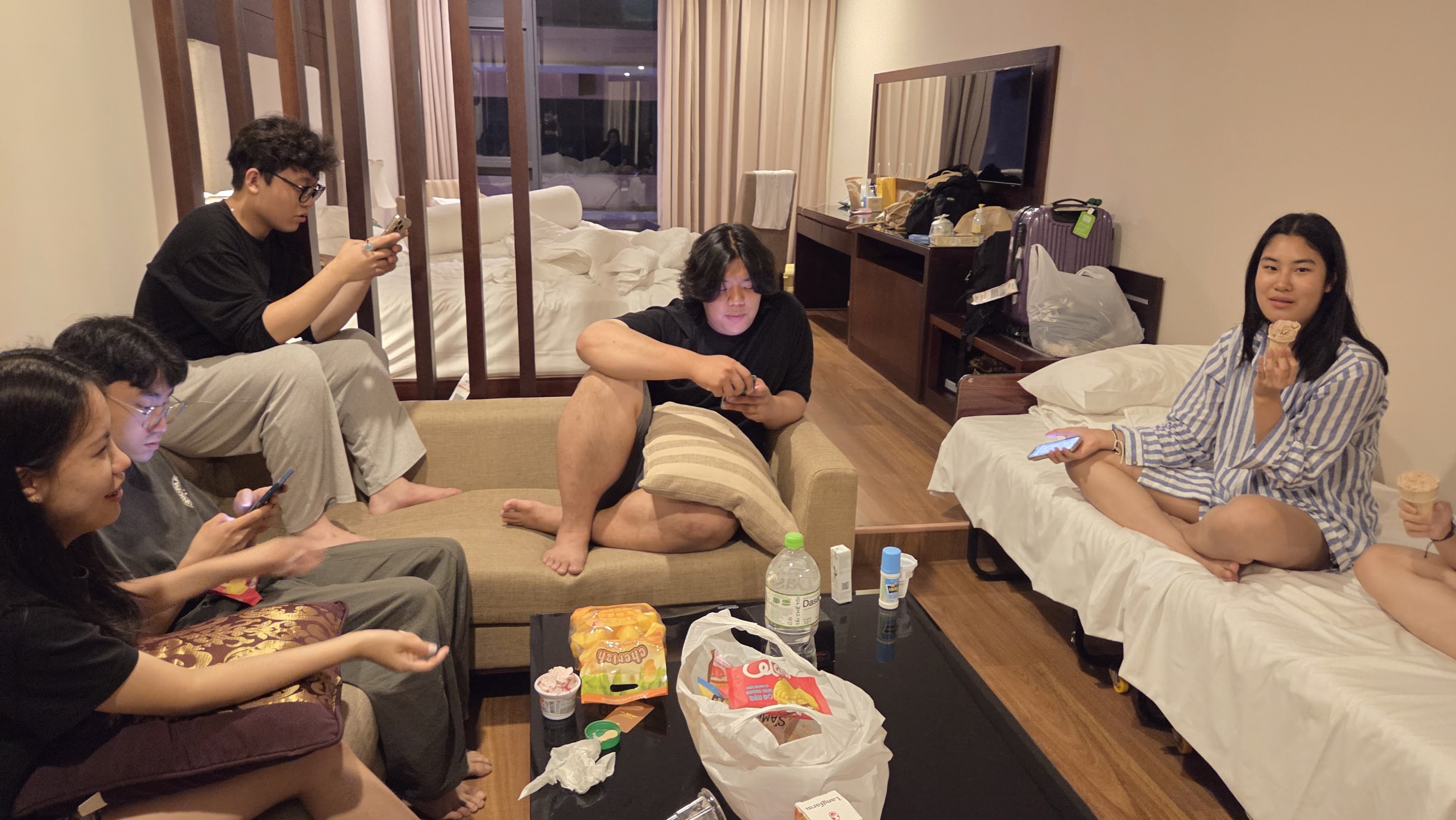 모든 일정 마치기 9시가 좀 넘었다. 마무리 하고 학원으로 이동. 엊그제까지는 호텔이 학원 바로 옆이어서 도보로 5분 정도면 됐는데 새로 옮긴 숙소는 걸어갈 거리가 아니어서 그랩으로 이동. 다 씻고 다시 모여 마무리 모임. 이제 실제적인 활동은 내일 하루 남았다. 다들 과일을 잘 먹어서 처음으로 그랩으로 과일 배달을 도전해 봤다. 9명이서 배불리 먹을 정도의 양인데 23,000원 정도 나왔다. 동남아는 정말 과일 천국!