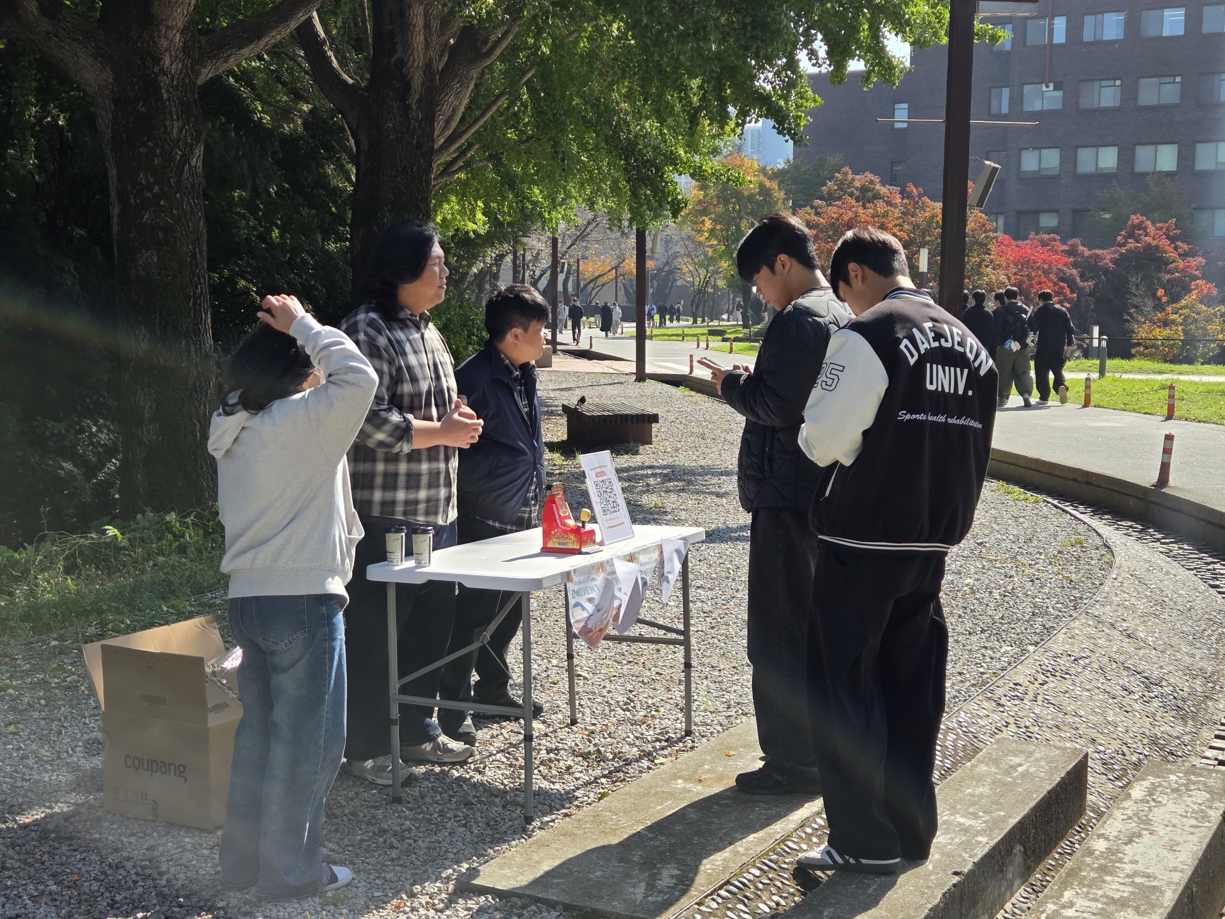 대전대에서는 매주 수요일마다 학생들과 간식 이벤트를 통해 만남을 갖고 있습니다. 이제는 말을 걸어주는 학생들도 좀 생기고 QR코드를 이용한 설문조사에 관심을 표시하는 학생들도 생기고 있습니다. 10월까지는 아이스크림을 위주로 나눔을 했는데 날이 추워져서 11월부터는 어묵꼬지 나눔을 할 예정입니다. 학생 멤버들이 든든히 세워지길 기도합니다. 군에 있던 형제 한 명이 9월에 제대했습니다. 내년 복학 예정인데 사역과 다시 연결되기를 기도합니다.