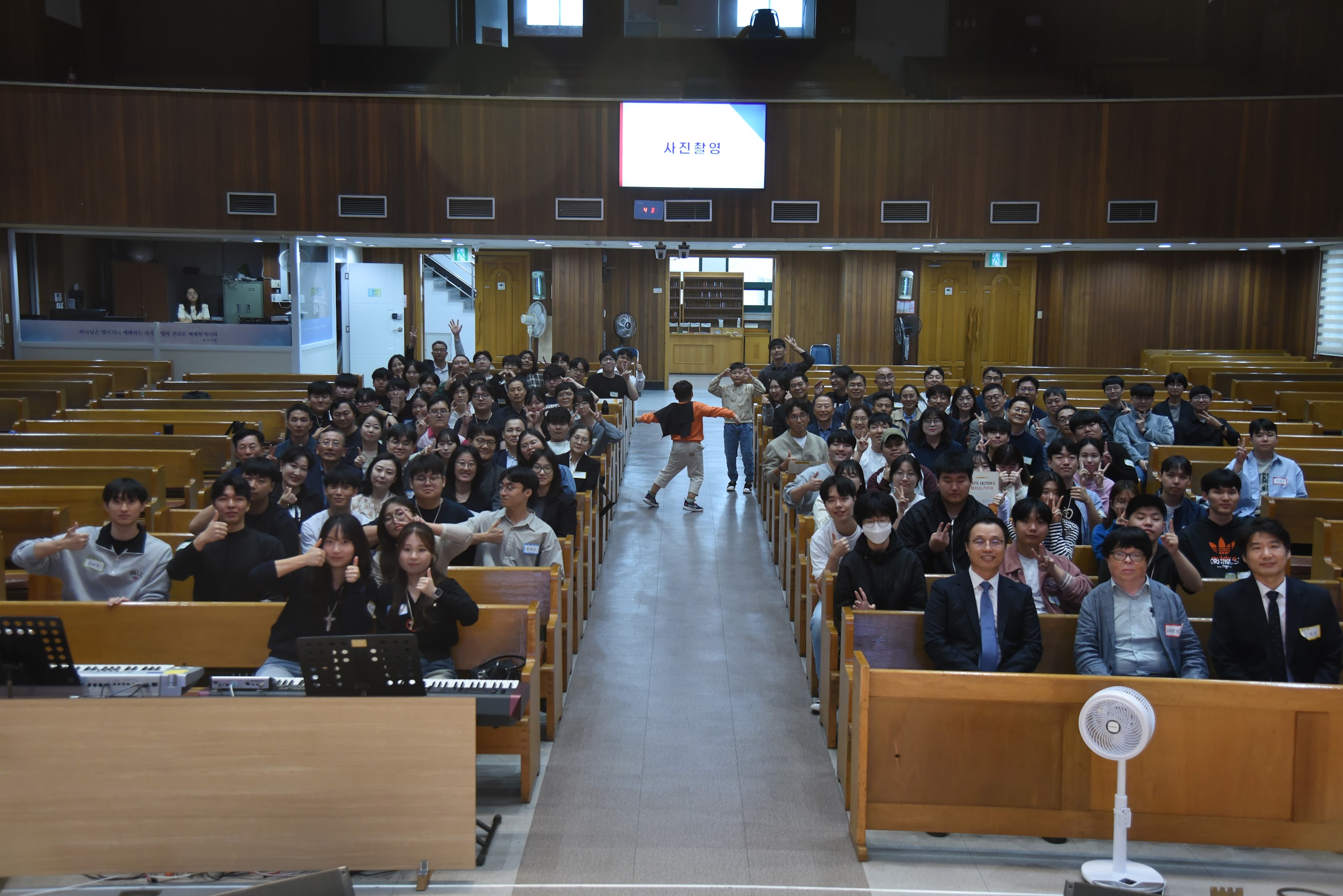대전지구 졸업생(맏가지)들이 한자리에 모이는 제자들큰잔치(홈커밍데이) 행사가 10월 18일에 열렸습니다. 150여명의 졸업생, 선교사, 재학생이 함께 모여 교제하고 함께 예배했습니다. 졸업생이 담임목회하는 교회를 장소로 제공해 주셔서 넓고 쾌적한 공간에서 모임을 할 수 있어 더 좋았습니다.