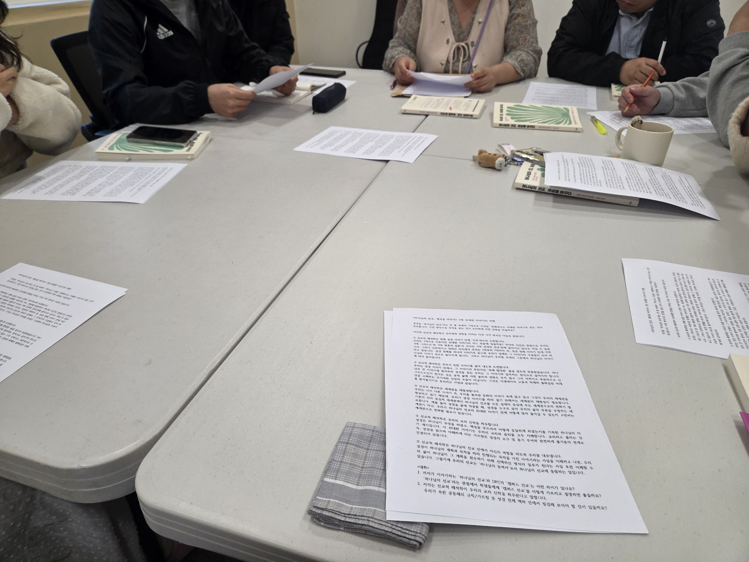 이번 학기부터 매주 월요일 오후에 대전지구 선교사들이 함께 모여 책을 읽고 토론하는 시간을 갖고 있습니다. 책의 내용을 통해 배우는 것도 있지만 선교사들 서로가 다양한 생각을 나누고 서로를 이해하는데도 많은 도움이 되는 시간입니다. 첫 책으로는 "하나님의 선교, 세상을 바꾸다"라는 책을 골랐습니다. 캠퍼스 선교사의 삶을 살고 있지만 선교의 이론적 토대를 쌓고 선교에 대한 이해를 넓히는데 도움이 되는 책이네요.