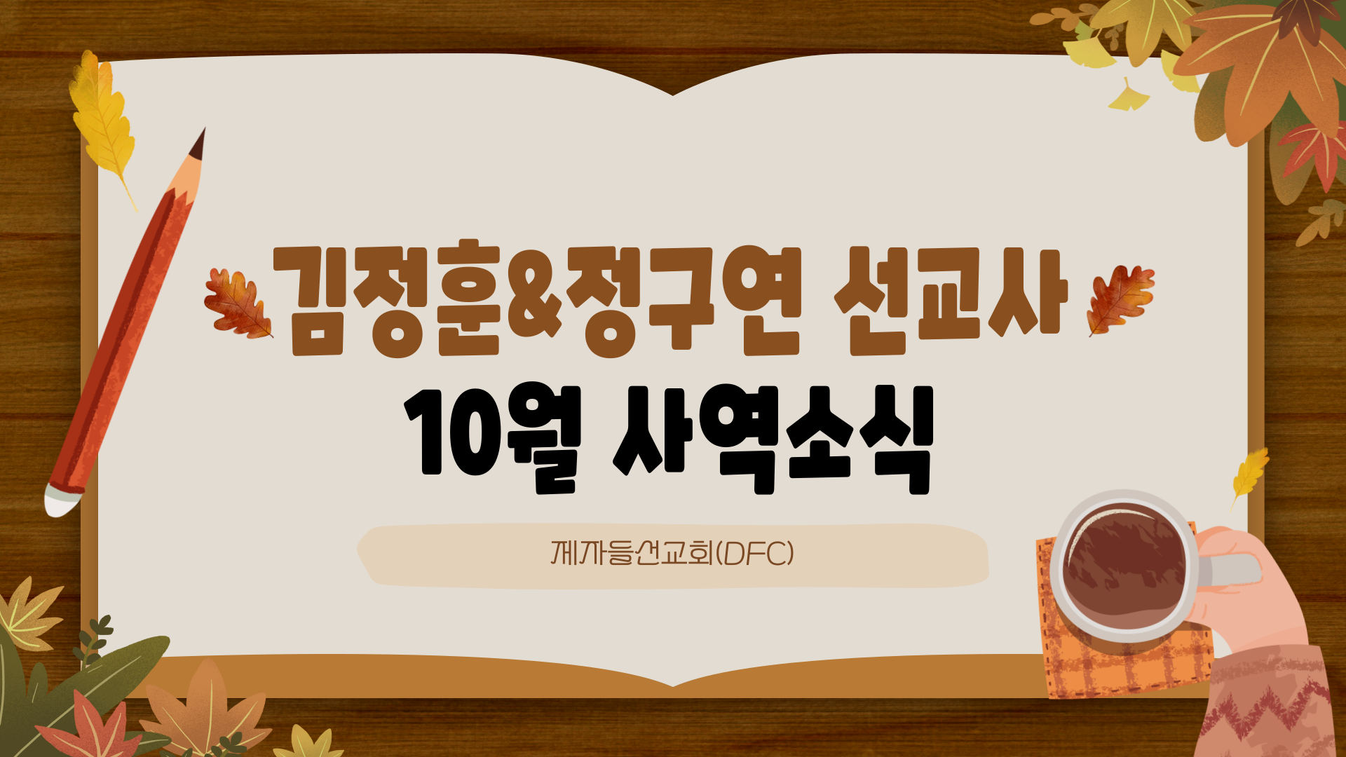 대학생 대상 선교단체인 DFC(제자들선교회) 소속 선교사입니다. 김정훈 선교사는 DFC 대전지구 대표로, 정구연 선교사는 DFC 대전지구 캠퍼스 선교사로 사역하고 있습니다. 주변에 신앙으로 세워가기 원하는 대학생이 있다면 언제나 연락주세요. 최선을 다해 돕겠습니다.